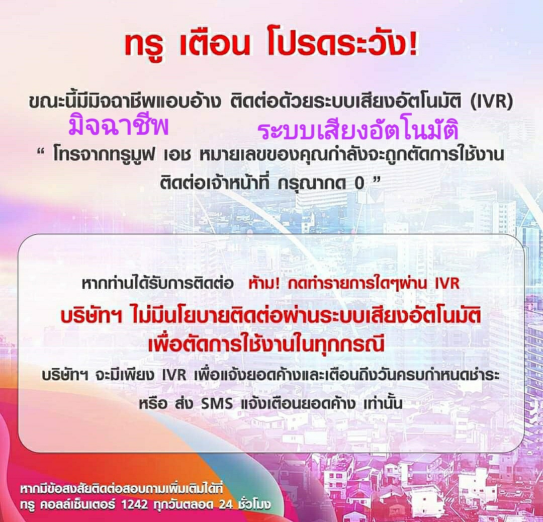 *ระวังมิจฉาชีพที่ติดต่อด้วยระบบเสียงอัตโนมัติ*