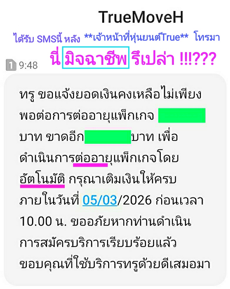 เรากลัวสุดจิตสุดใจ ว่า *นั่นเป็นมิจฉาชีพ รึเปล่า ?* เรากังวลสุดๆว่า ทันทีที่เราเติมเงินครบ 1,790 บาท มันจะถูกมิจฉาชีพดูดไปทั้งหมด ??? หรือ จะได้ต่ออายุแพ็กเกจกับ True ???