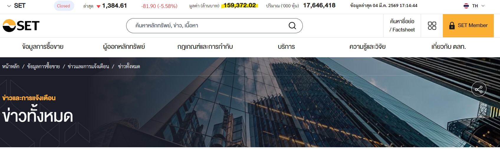 ได้กลิ่นความเจริญ => เมื่อ Set Index ยอดซื้อขายทะลุ เกือบ 160,000 ลบ.