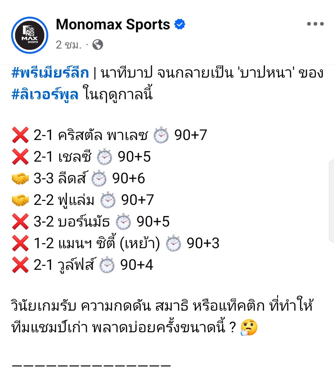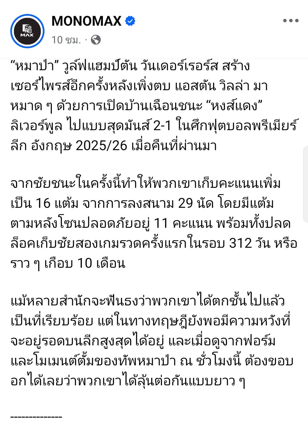 ⚽ Liverpool สร้างสถิติใหม่ในประวัติศาสตร์พรีเมียร์ลีก 🏴 ส่วน "หมาป่า" ชนะ 2 เกมติดในรอบเกือบ 10 เดือน