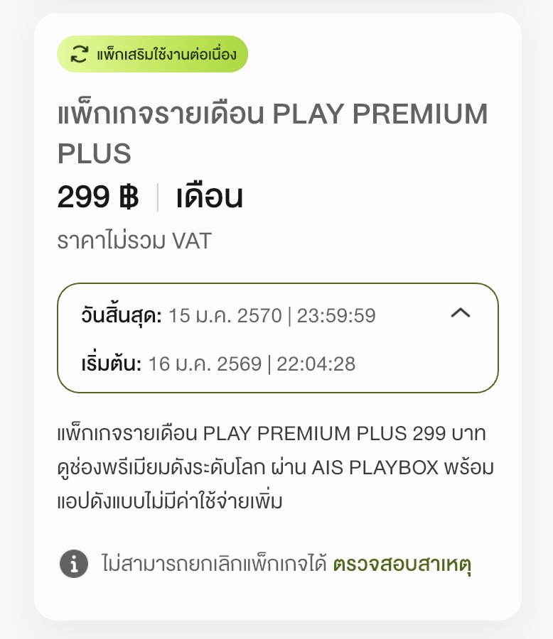 ยกเลิกแพ็กเกจ PLAY PREMIUM PLUS ของ AIS ไม่ได้ ทั้งที่เป็นแพ็กเสริมรายเดือน ทำยังไงดีครับ?