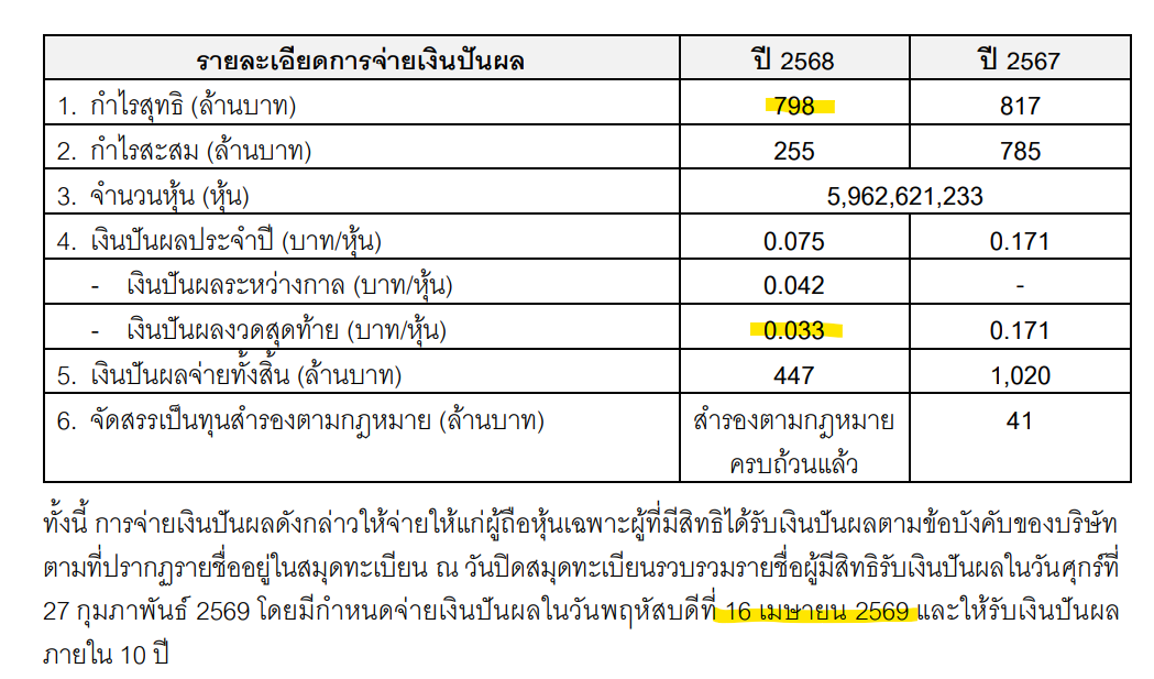 KKP งบปี 2568 + ประกาศจ่ายปันผล