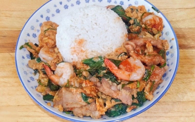 ห่อหมกหมูกุ้งราดข้าวค่ะ