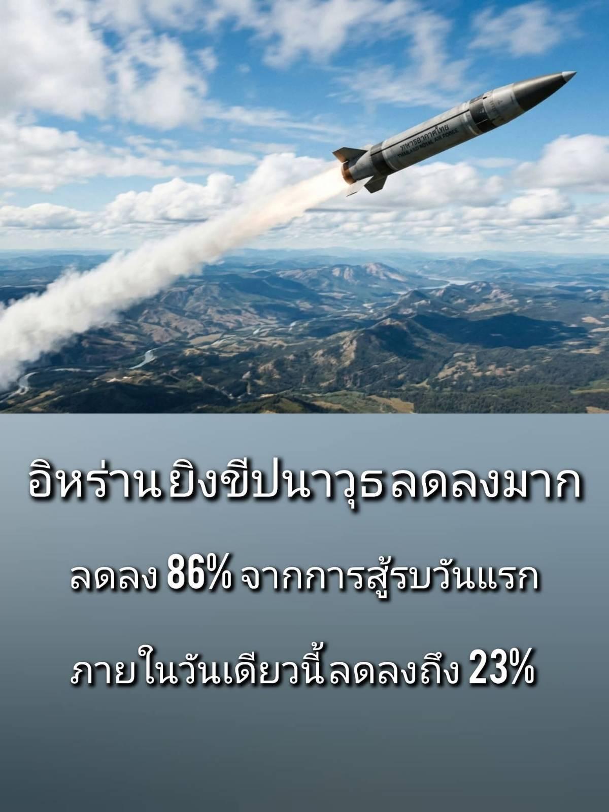 เขาระบุว่า การยิงขีปนาวุธของอิหร่านลดลงถึง 86% เมื่อเทียบกับวันแรกของการสู้รบ และในช่วง 24 ชั่วโมงที่ผ่านมาเพียงอย่างเดียว ลดลงต่ออีก 23% สะท้อนว่าแรงกดดันทางทหารเริ่มส่งผล