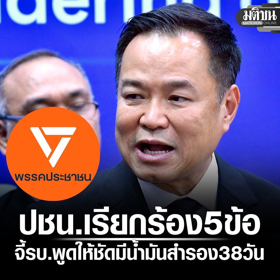 ปชน.เรียกร้อง 5 ข้อ จี้รบ.พูดให้ชัด มีน้ำมันสำรองแค่ 38 วัน รณรงค์ประหยัดพลังงาน รับมือวิกฤต