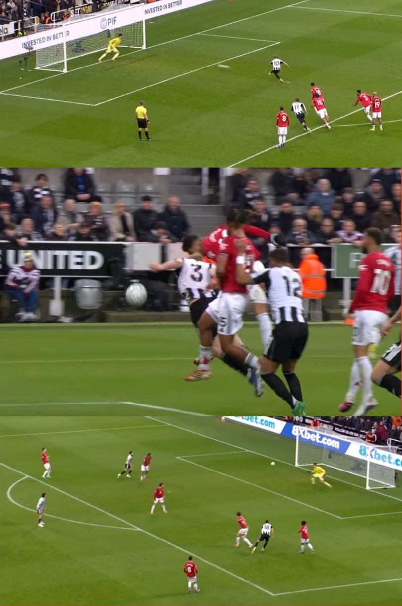 รูปเกมครึ่งแรก : นิวคาสเซิ่ลเริ่มต้นได้ดุดันกว่าและนำก่อนจากจุดโทษ ทว่าแมนยูแสดงสปิริตโหม่งตีเสมอได้ในช่วงทดเจ็บยาวนานจากการประสานงานของรุ่นใหญ่