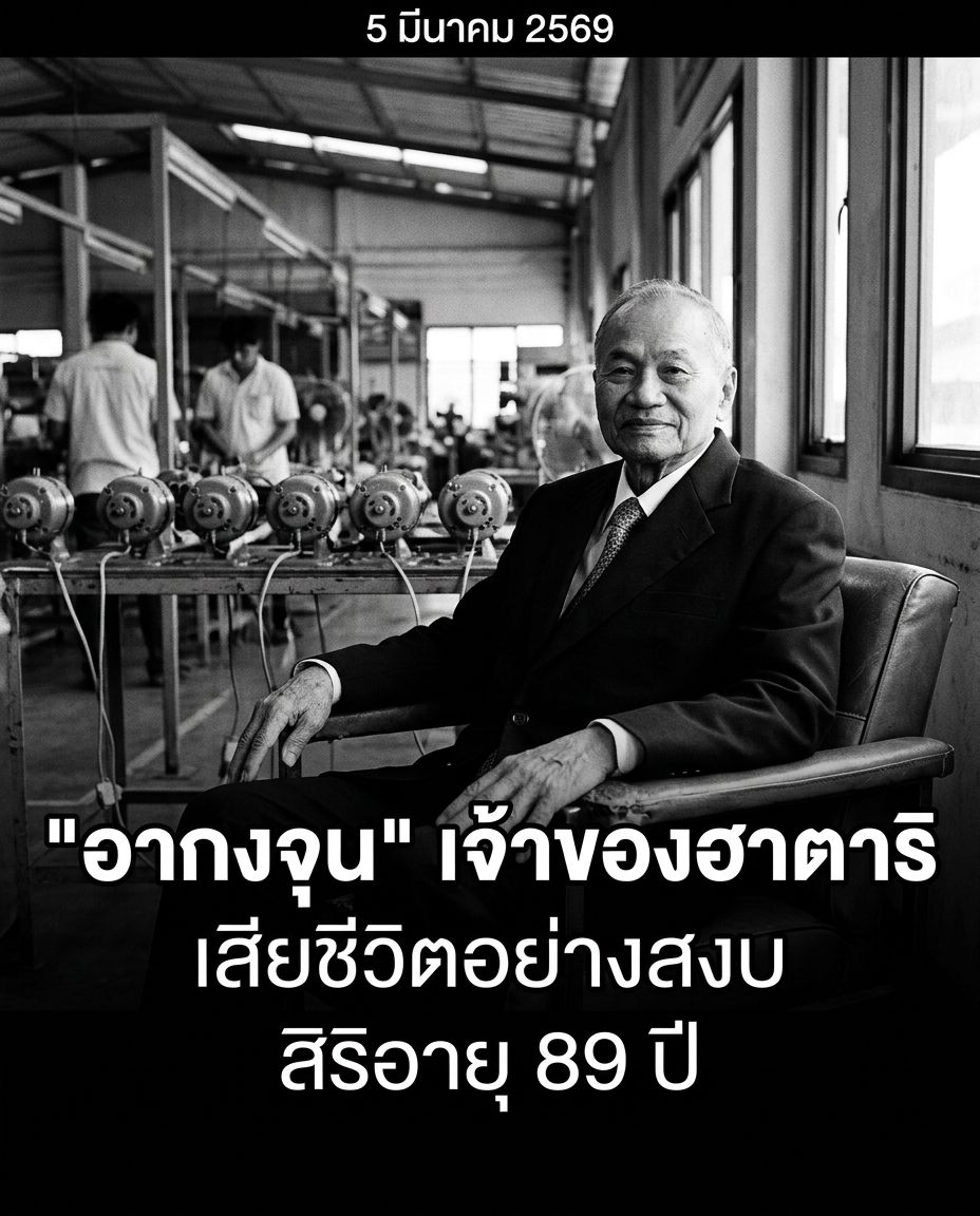 🖤 “อากงจุน” ผู้ก่อตั้ง “พัดลมฮาตาริ” (Hatari) ได้เสียชีวิตลงแล้วอย่างสงบ เมื่อวันที่ 5 มีนาคม 2569 สิริอายุ 89 ปี