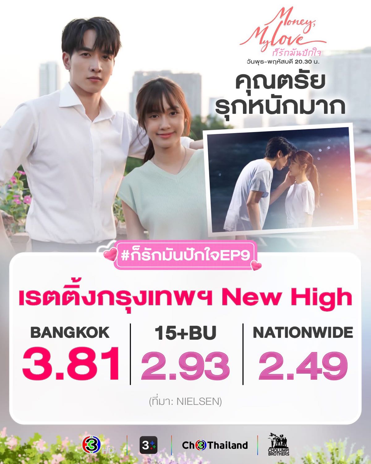 #ก็รักมันปักใจEP9 ทำเรตติ้งกรุงเทพฯ New High คนดูเขินจัดคุณตรัยรุกจีบผักบุ้งหนักมาก