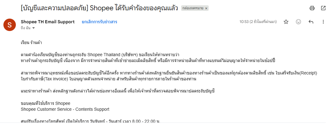 ตามที่ระบบแจ้งเข้ามาว่าทางร้านมีการจำหน่ายสินค้าที่ละเมิด