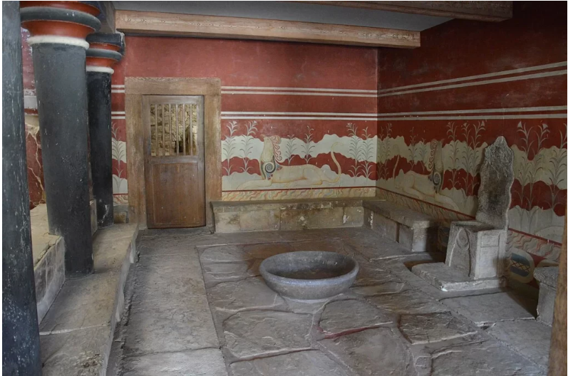 ที่ตั้ง:- ส่วนใหญ่ส้วมเหล่านี้จะถูกพบในโซนที่พักอาศัยของชนชั้นสูง เช่น "ห้องบรรทมพระราชินี" (Queen’s Megaron) ซึ่งสะท้อนให้เห็นว่าชาวมิโนอันให้ความสำคัญกับสุขอนามัยและความสะดวกสบายสูงมาก ก่อนที่เทคโนโลยีนี้จะหายไปและกลับมาแพร่หลายอีกครั้งในหลายพันปีต่อมา