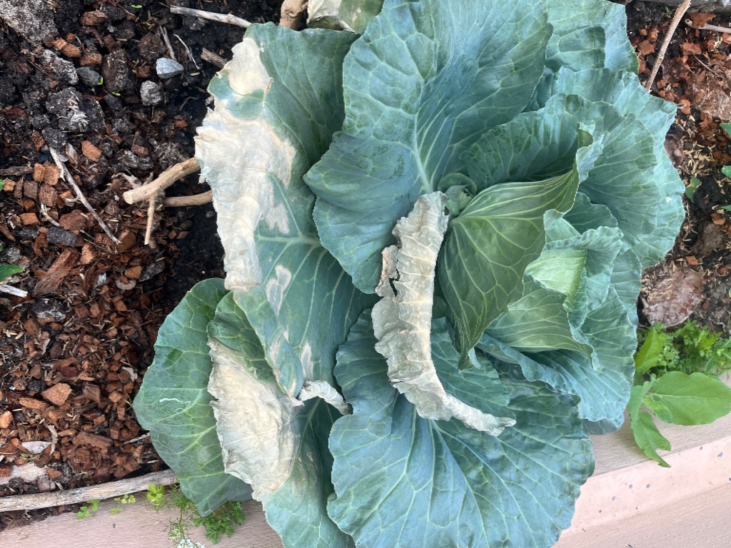 มาวันนี้ ใบที่เหี่ยวๆ ใบก็กรอบไปเลยค่ะ ยังดีที่รอดอยู่ หวังจะได้กินกะหล่ำปลีฝีมือตัวเองสักครั้ง ปลูกครั้งแรกด้วยค่ะ