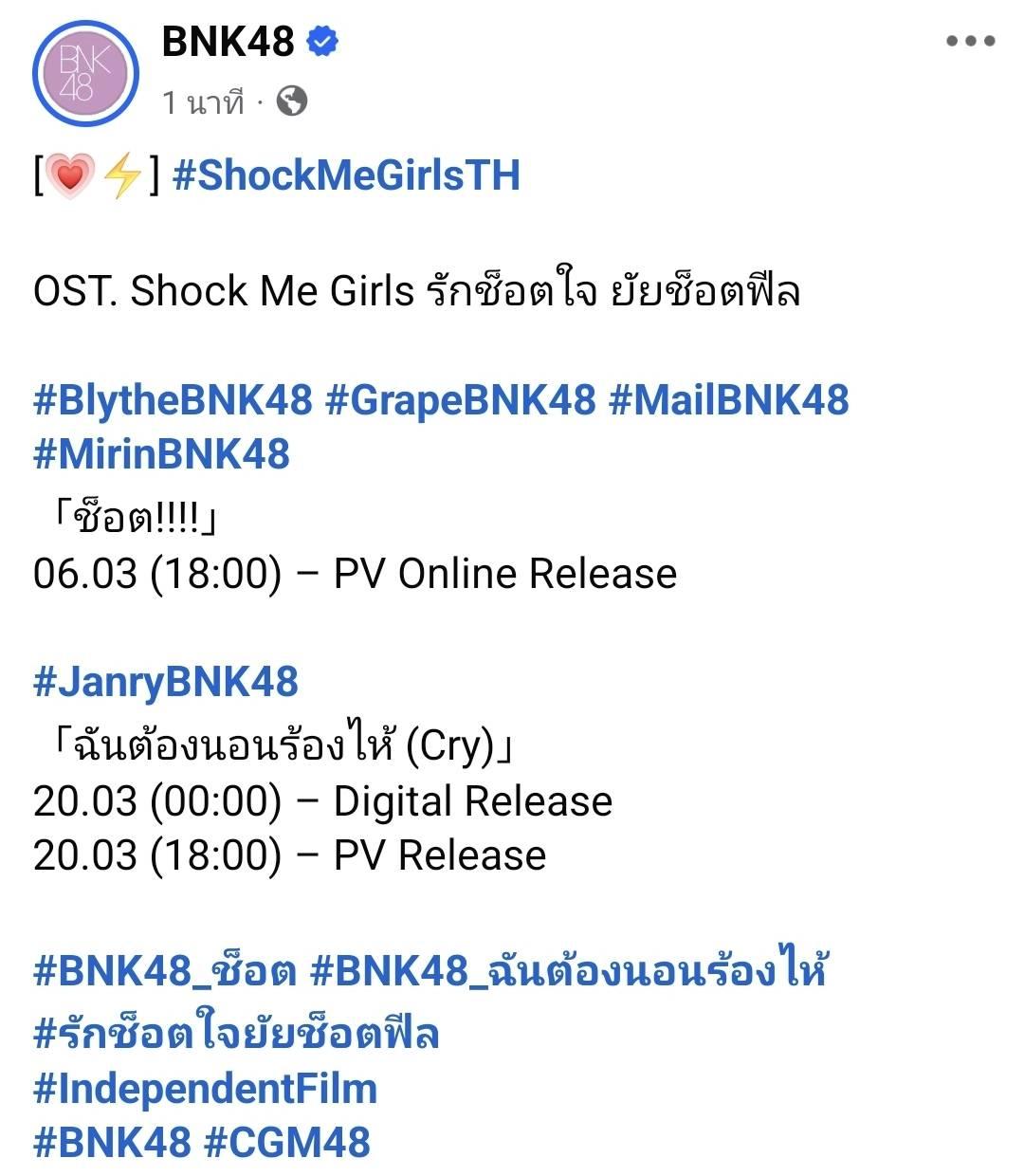 ส่วนเพลง "ฉันต้องนอนร้องไห้ (Cry)" ของน้องแจนรี่ ได้ชมกันวันศุกร์ที่ 20 มีนาคม