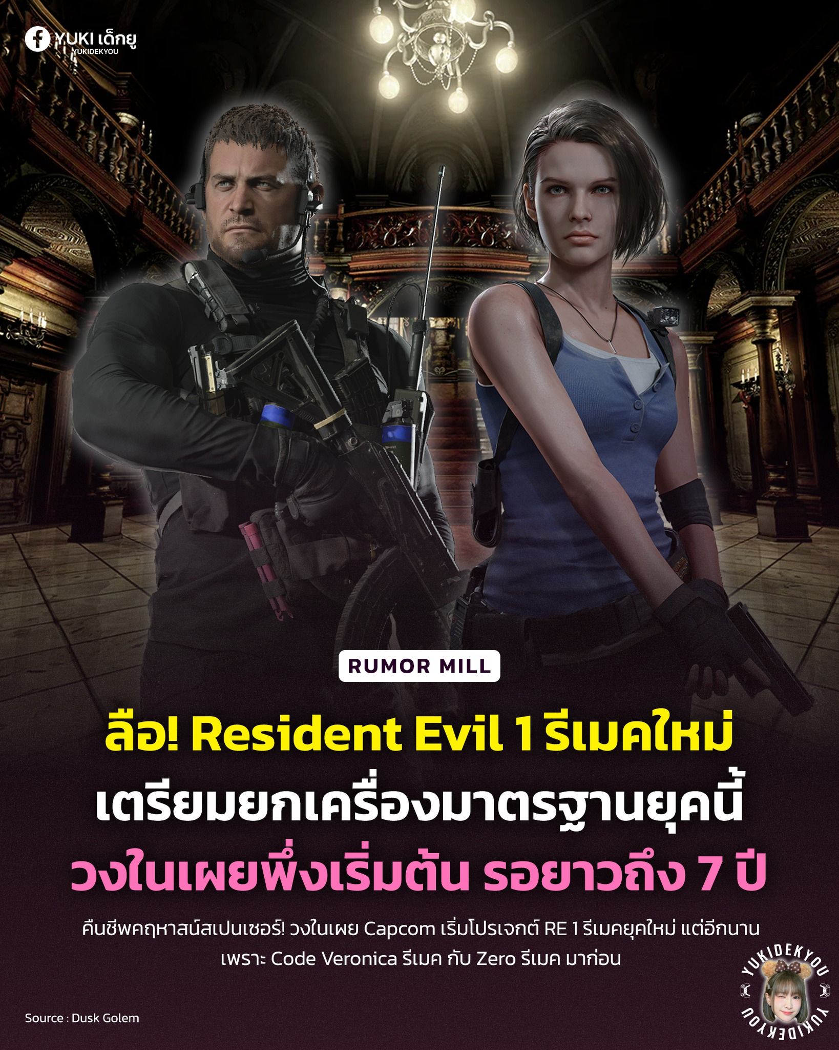 โดย Dusk Golem ผู้ปล่อยข่าวลือได้ให้ข้อมูลว่า ขณะนี้ Resident Evil ภาคแรกกำลังเข้าสู่ขั้นตอนการพัฒนาการทำใหม่เรียบร้อยแล้วโดยจะเป็นโปรเจคต่อจาก Resident evil 0 รีเมค ซึ่งตอนนี้มีข่าวลือว่า Capcom กำลังรีภาค Code Veronica และภาค 0 อยู่ โดยจะให้มีความเชื่อมโยงกับภาค 2-4 Remake และภาค 7 - 9 (Requiem) มากยิ่งขึ้น ซึ่งถ้าใครได้เล่น Resident evil Requiem จบมาแล้ว คงจะทราบกันดีว่ามันค่อนข้างที่จะมี Lore ที่ขัดแย้งกับภาค Original อยู่ โดยเฉพาะ