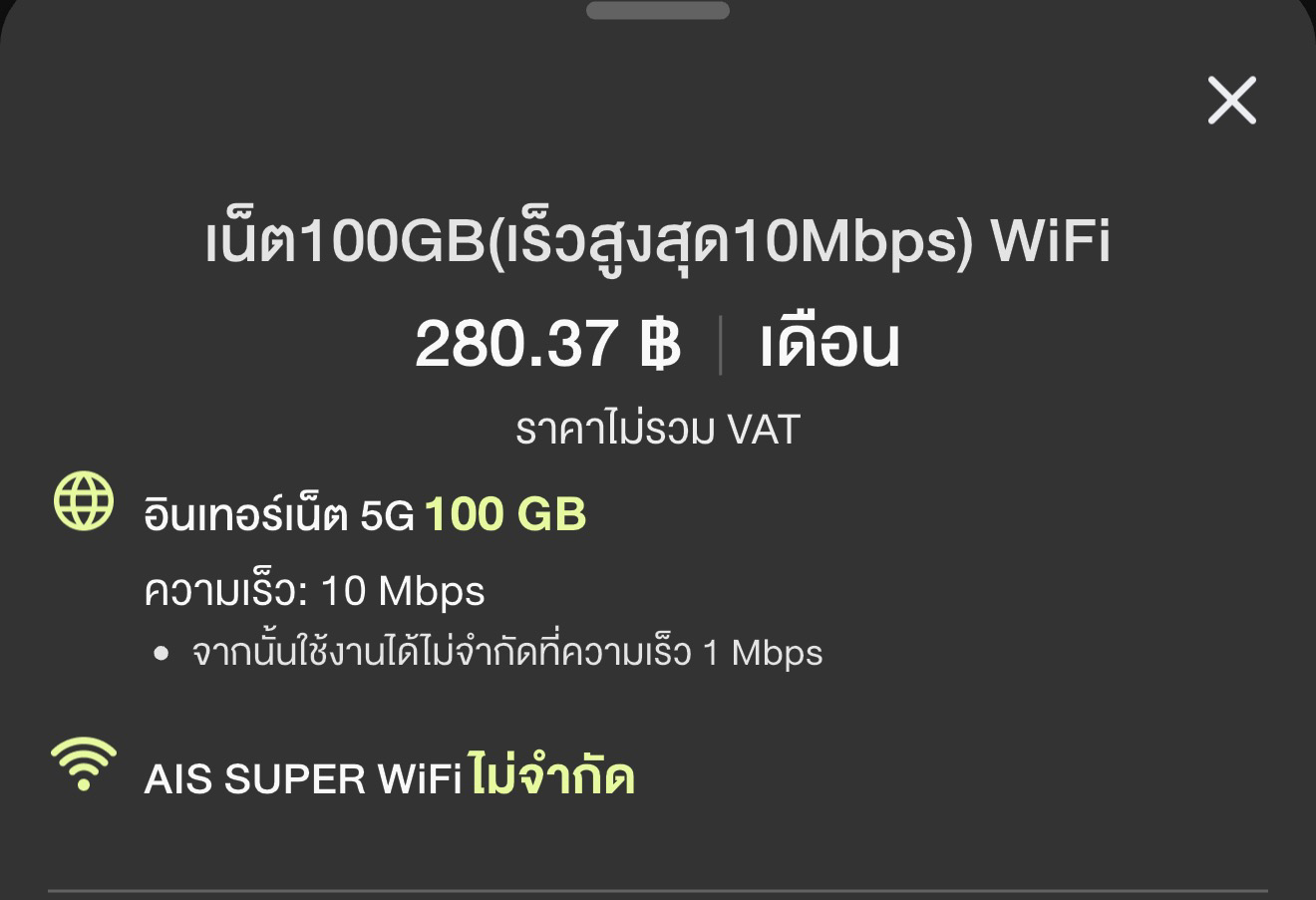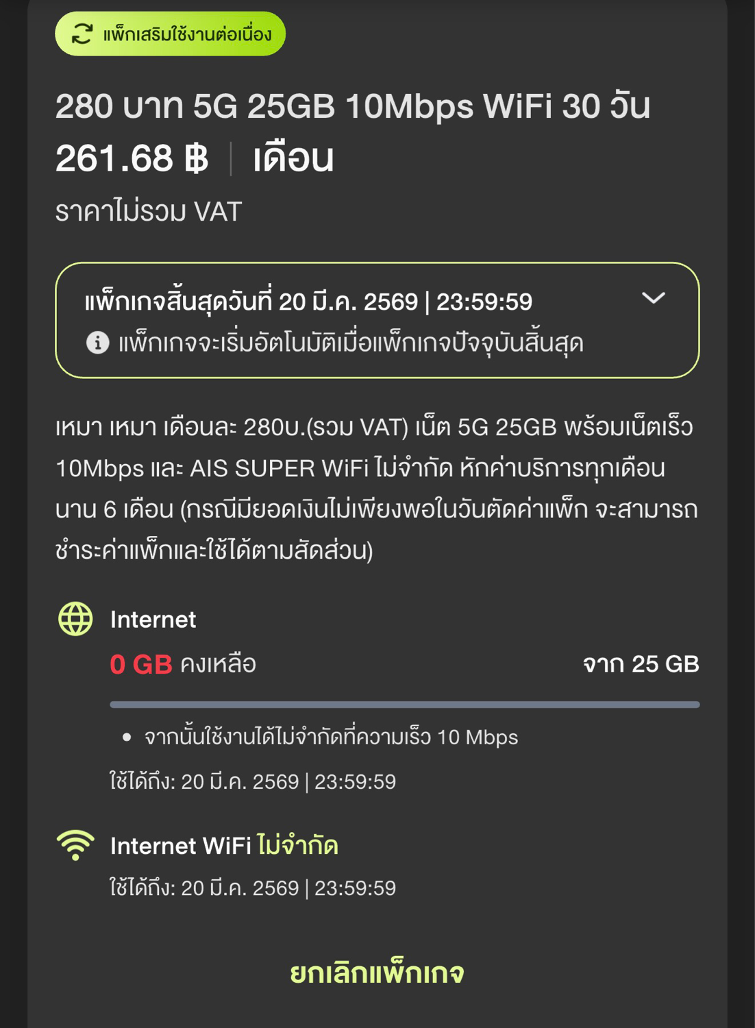 ผมโดนแล้ว AIS เติมเงิน บังคับ เปลี่ยนแพคเกจ จาก 235 บาท 30Mbps เป็น 250 บาท 1Mbps หรือเลือก 280 บาท 10Mbps