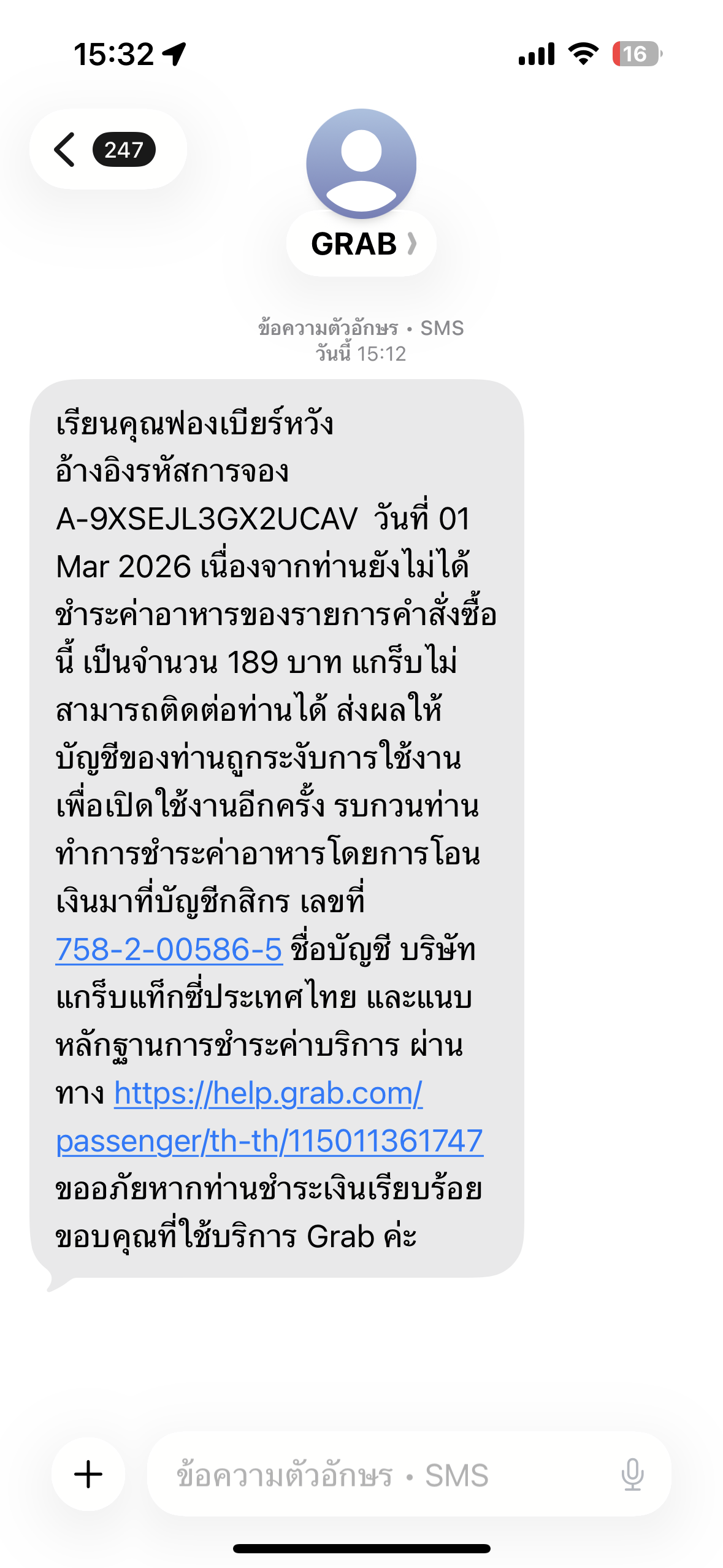สวัสดีค่ะได้รับข้อความจาก grab ว่าค้างชำระว่าค้างชำระอยู่ 189 บาท แล้วก็โดนรับบัญชีใช้งาน ตอนนี้เราไม่แน่ใจว่าค้าชำระตอนนี้เราไม่แน่ใจว่าค้างชำระตอนไหน แต่ก็ชำระเรียบร้อยแล้ว อยากทราบว่าสามารถแนบหลักฐานการชำระ อยากทราบว่าสามารถแนบหลักฐานการชำระได้ช่องทางไหนบ้างหรือติดต่อกับเจ้าหน้าที่ของทาง Grab ได้โดยตรงเพราะทางไหนบ้าง #grab #สอบถาม @Grabthailand #grabfood