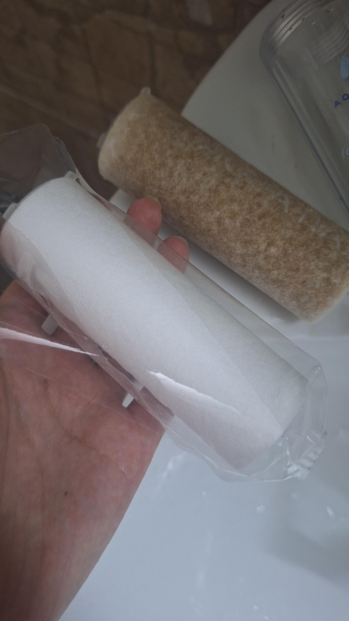 อันนี้คือใส้กรองของฝักบัวค่ะ อันบนคือที่พึ่งใช้ไปได้ไม่กี่เดือน ส่วนอันล่างคืออันใหม่ค่ะ