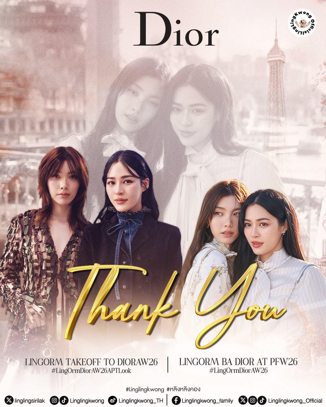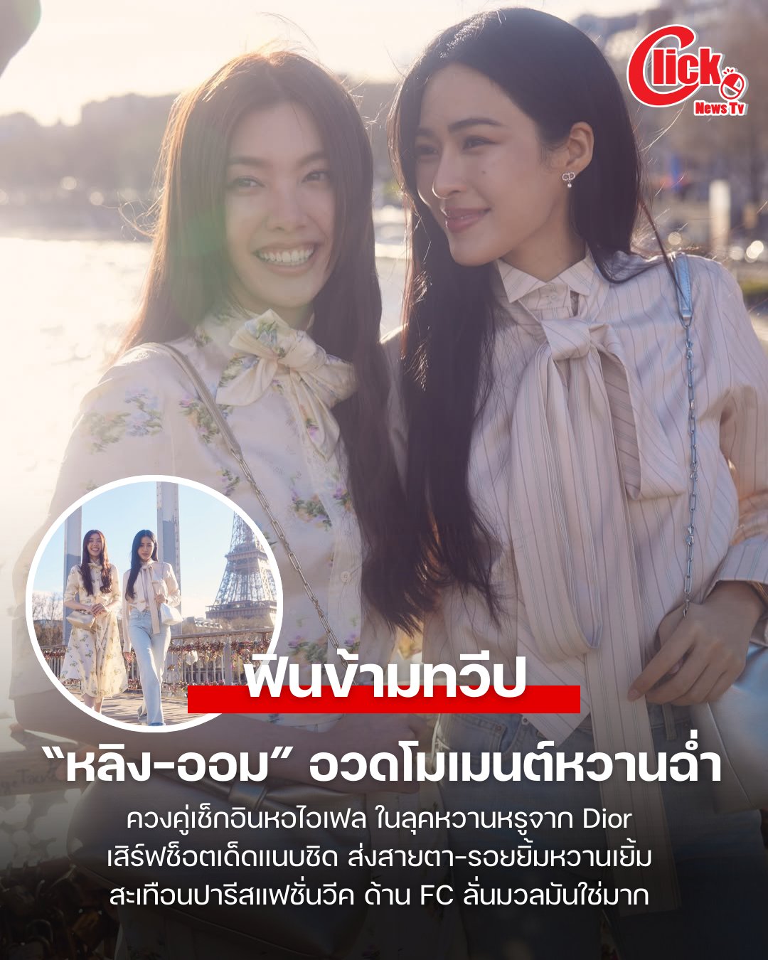 ปารีสรอบนี้หวานกว่าที่เคย สำหรับโมเมนต์ของ 2 นางเอกตัวท็อป “หลิงหลิง-ศิริลักษณ์ คอง” และ “ออม-กรณ์นภัส เศรษฐรัตนพงศ์” ใน Paris Fashion Week 2026 บอกเลยว่าทำถึงเกินคุณน้า เพราะนอกจากลุค Dior ของทั้งคู๋จะสวยหรูดูแพงแบบตะโกนทุกลุคแล้ว เคมีของทั้งคู่ท่ามกลางวิวนครปารีสยังฟุ้งกระจาย โดยเฉพาะรูปคู่ ของ “พี่หลิงหลิง” และ “น้องออม” กับช็อตแนบชิด ส่งสายตาและรอยยิ้มอบอุ่นให้กันแบบไม่มีกั๊ก ท่ามกลางบรรยากาศริมแม่น้ำแซนและฉากหลังหอไอเฟลสุดแสนโรแมนติก