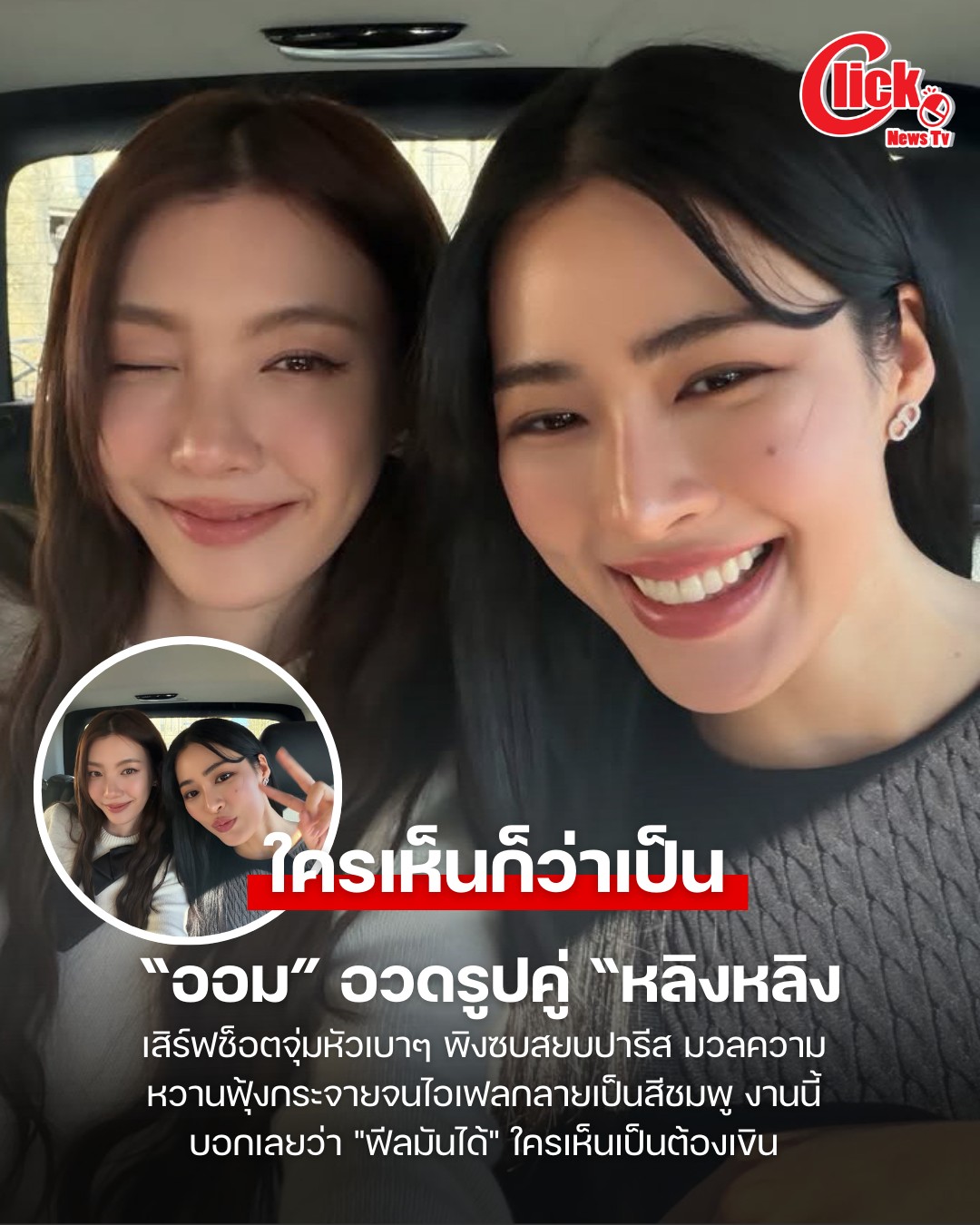 ทำเอาแฟนคลับ ใจไม่อยู่กับเนื้อกับตัว ฟินแบบโอเวอร์โดส เมื่อนางเอกสาวสุดฮอต “ออม-กรณ์นภัส” เสิร์ฟความหวานแบบโปรแม็กซ์ ด้วยการ โพสต์ภาพเซลฟี่คู่กับพาร์ทเนอร์คนพิเศษ “หลิงหลิง-คอง” แบบเอียงหัวแนบชิดกันเบาๆ บนรถยนต์ ระหว่างเดินทางไปร่วมงาน Paris Fashion Week 2026 ในฐานะ Dior House Ambassador ณ กรุงปารีส ประเทศฝรั่งเศส