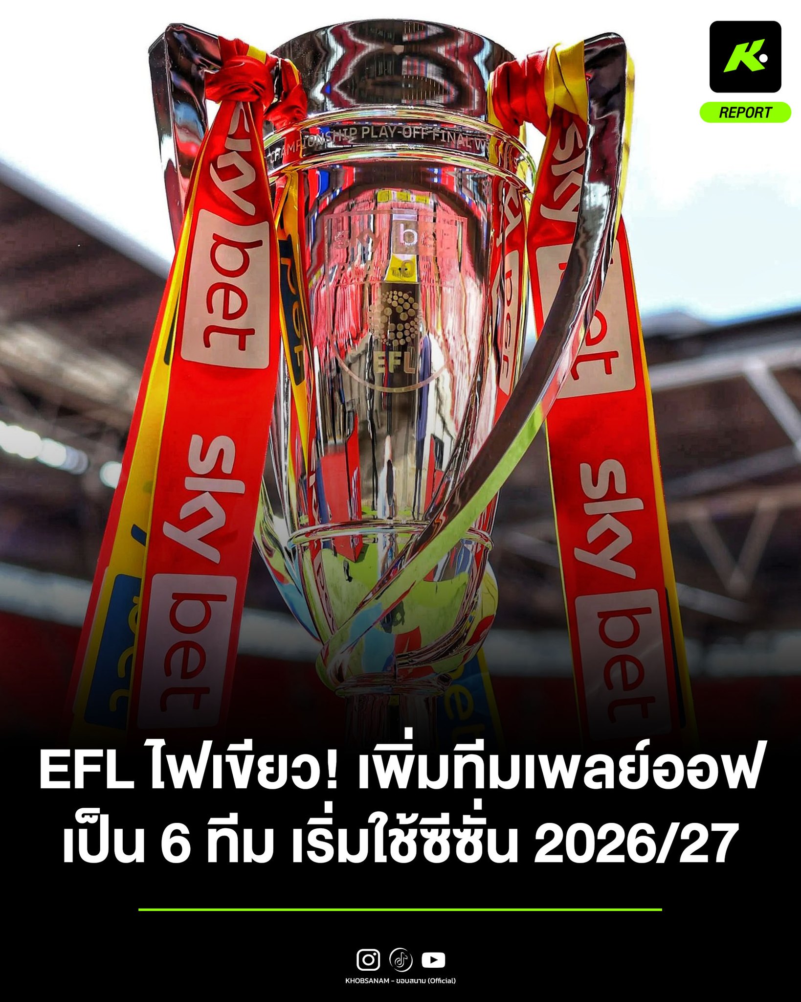 สมาคมฟุตบอลลีก หรือ EFL มีมติเห็นชอบจากสโมสรให้เปลี่ยนแปลงระบบการแข่งขันเพลย์ออฟเลื่อนชั้นของฟุตบอลอีเอฟแอล แชมเปี้ยนชิพ