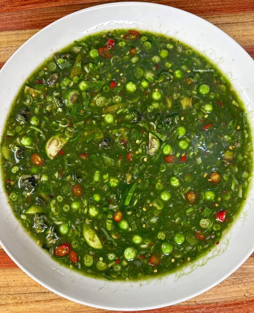 4. นำเนื้อปลาทูที่โขลกละเอียดมาผสมคลุกเคล้ากับน้ำปลาร้าที่กรองไว้ และต้มให้เดือดจากนั้นนำเทา (สาหร่ายน้ำจืด) และปรุงรสตามชอบ และใส่ข้าวคั่วเป็นขั้นตอนสุดท้าย