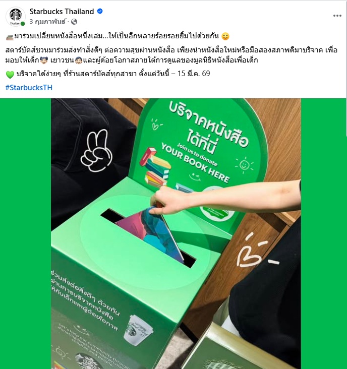 บริจาคหนังสือที่ร้านสตาร์บัค