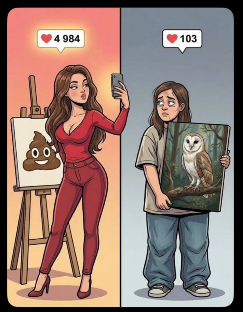 ผมเห็นภาพนี้แล้วรู้สึกว่ามันสะท้อนอะไรบางอย่างเกี่ยวกับโลกโซเชียลในปัจจุบัน ....