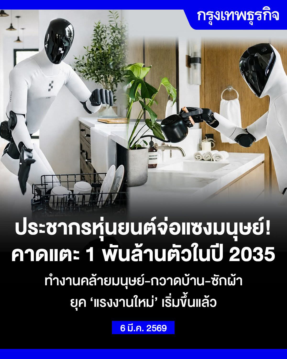 ประชากรหุ่นยนต์จ่อแซงมนุษย์! คาดแตะ 1 พันล้านตัวในปี 2035 ทำงานคล้ายมนุษย์-กวาดบ้าน-ซักผ้า ยุค ‘แรงงานใหม่’ เริ่มขึ้นแล้ว