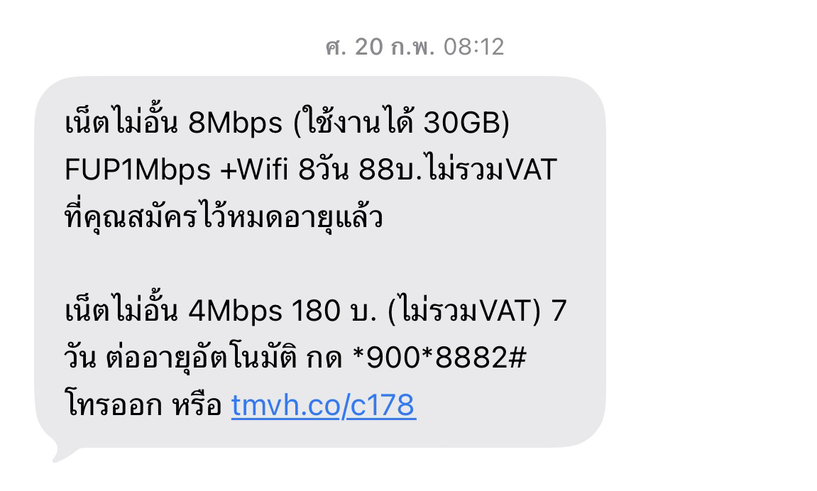 คือผมสมัครเน็ตทรูไปแล้ว ตัดเงินผ่านทรูมันนี่ แต่ไม่มี SMS. แจ้งว่าสมัครแพ็กเกจแล้วก็ใช้งานเน็ตไม่ได้