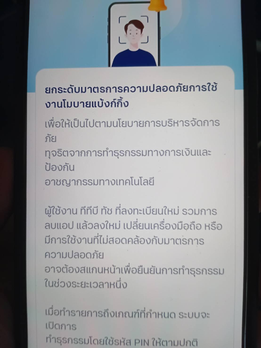 เช้าวันนี้ผมจะสแกนจ่ายซื้อกาแฟ อยู่ๆก็แอพก็ขึ้นให้สแกนหน้า แล้วก็มีข้อความแปลกๆในแอพ ไม่ทราบบัญชีผมมีความเสี่ยงผิดปกติอะไรหรอครับ จะได้ไปแก้ไขหรือต้องไปลงบันทึกประจำวันไหมครับ ใช้ kplus กับ ธนาคารกรุงเทพ ไม่เคยเป็น
