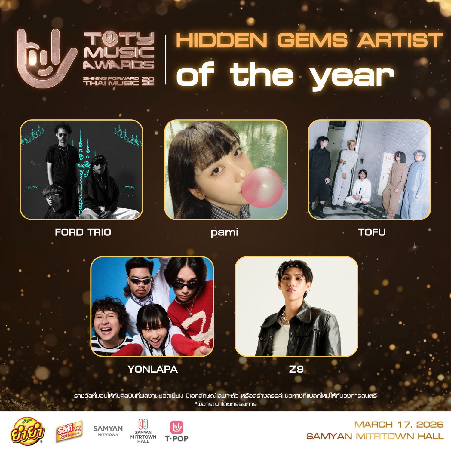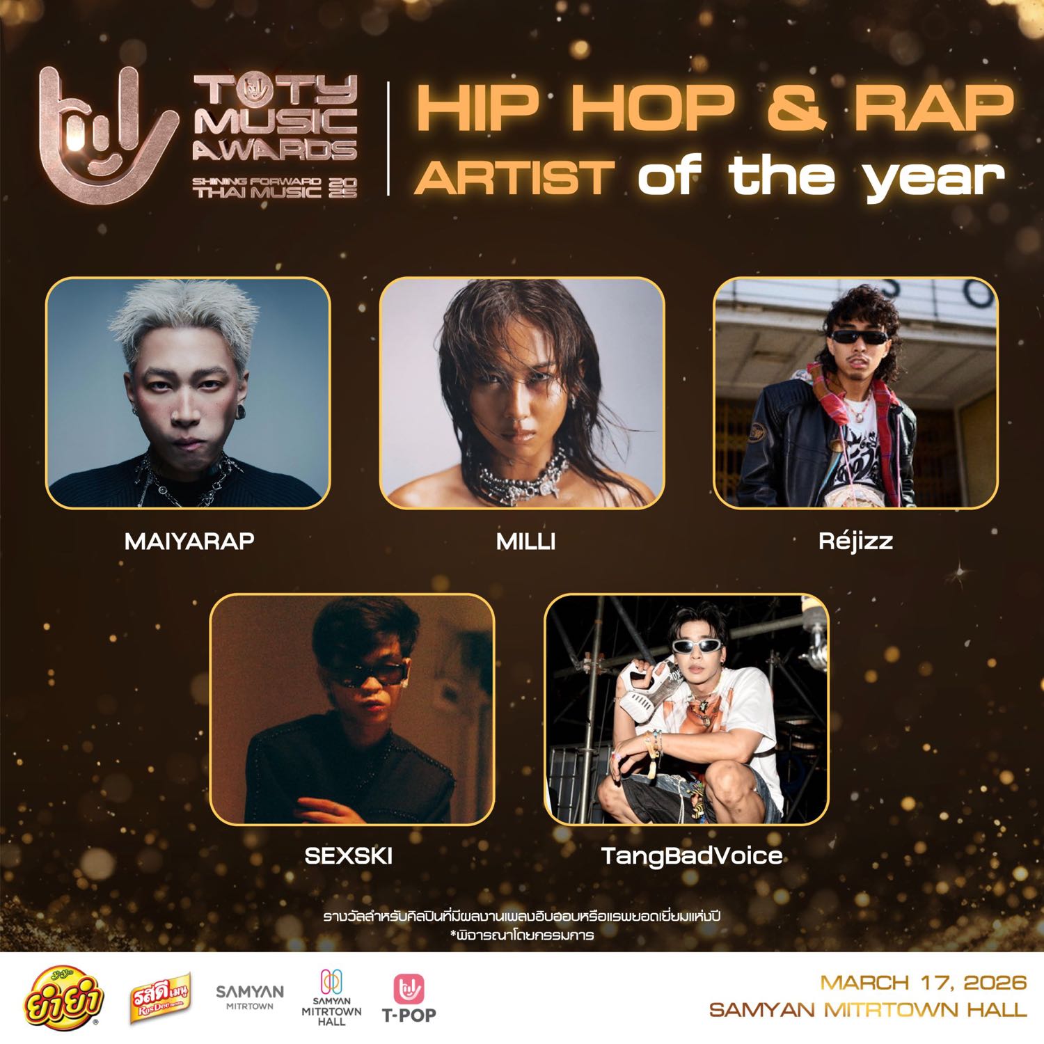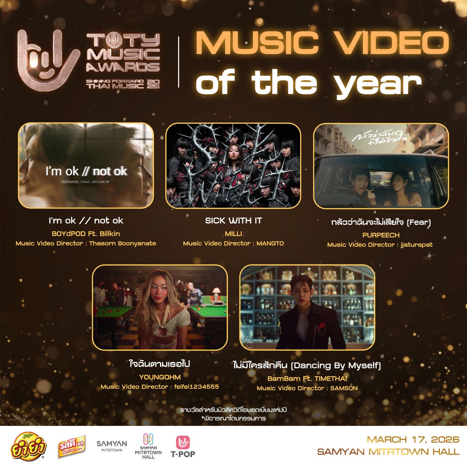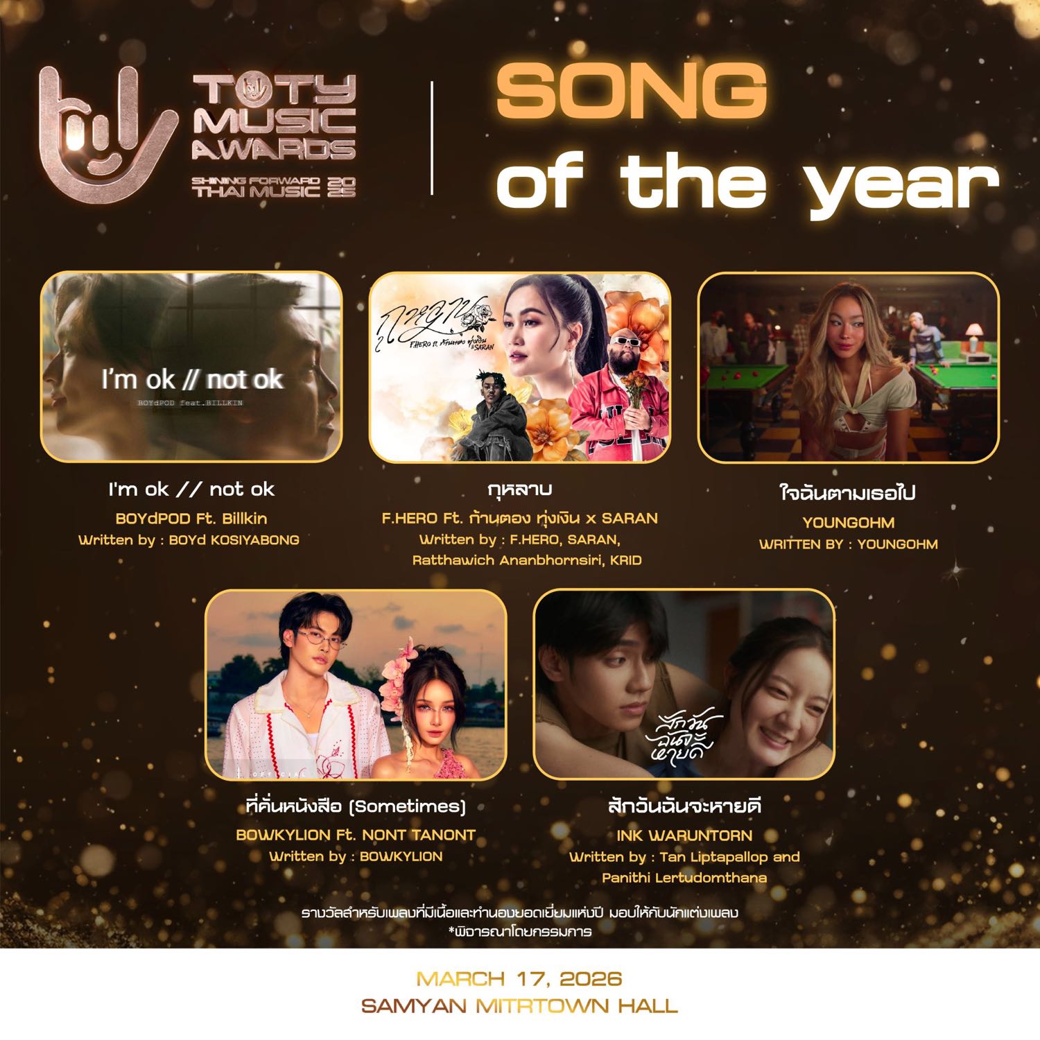 เปิดรายชื่อผู้เข้าชิงหมวด 🏆 T-POP OF THE YEAR ในงาน 𝟐𝟎𝟐𝟓 𝐓𝐎𝐓𝐘 𝐌𝐔𝐒𝐈𝐂 𝐀𝐖𝐀𝐑𝐃𝐒