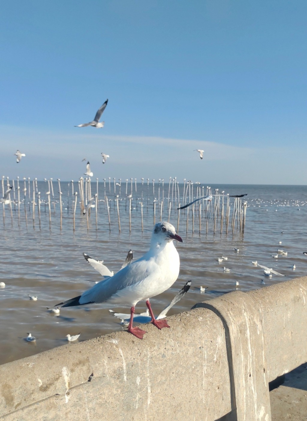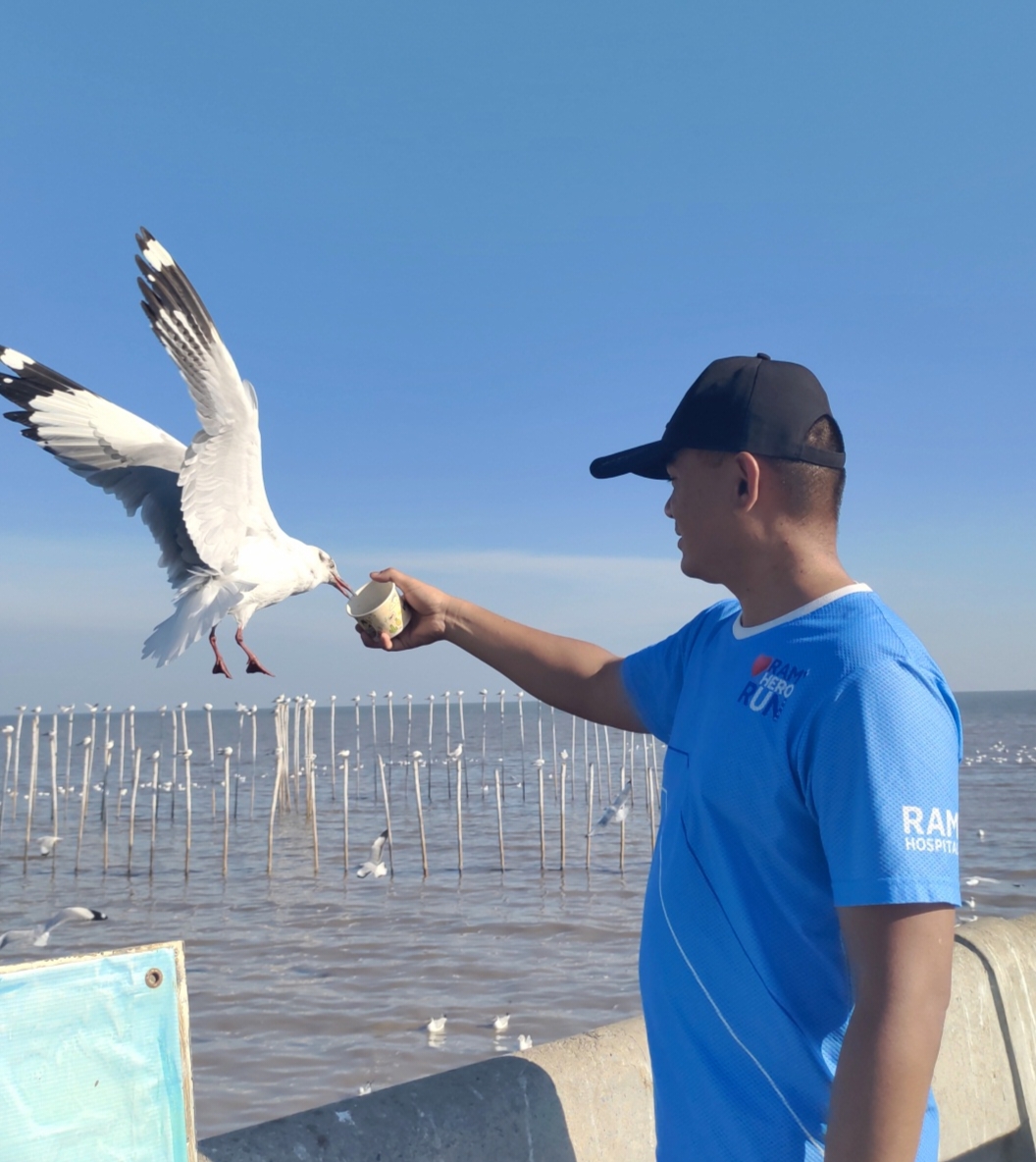📸 ถ่ายรูปน้องนกนางนวล 🕊️ พร้อมกับแสงแดดอันแรงกล้า 🌞 ในช่วง 4 โมงเย็น 🌤️ สวยมากๆ แต่ถ่ายด้วยกล้องโทรศัพท์นะ ⭐👍🏻😬😬