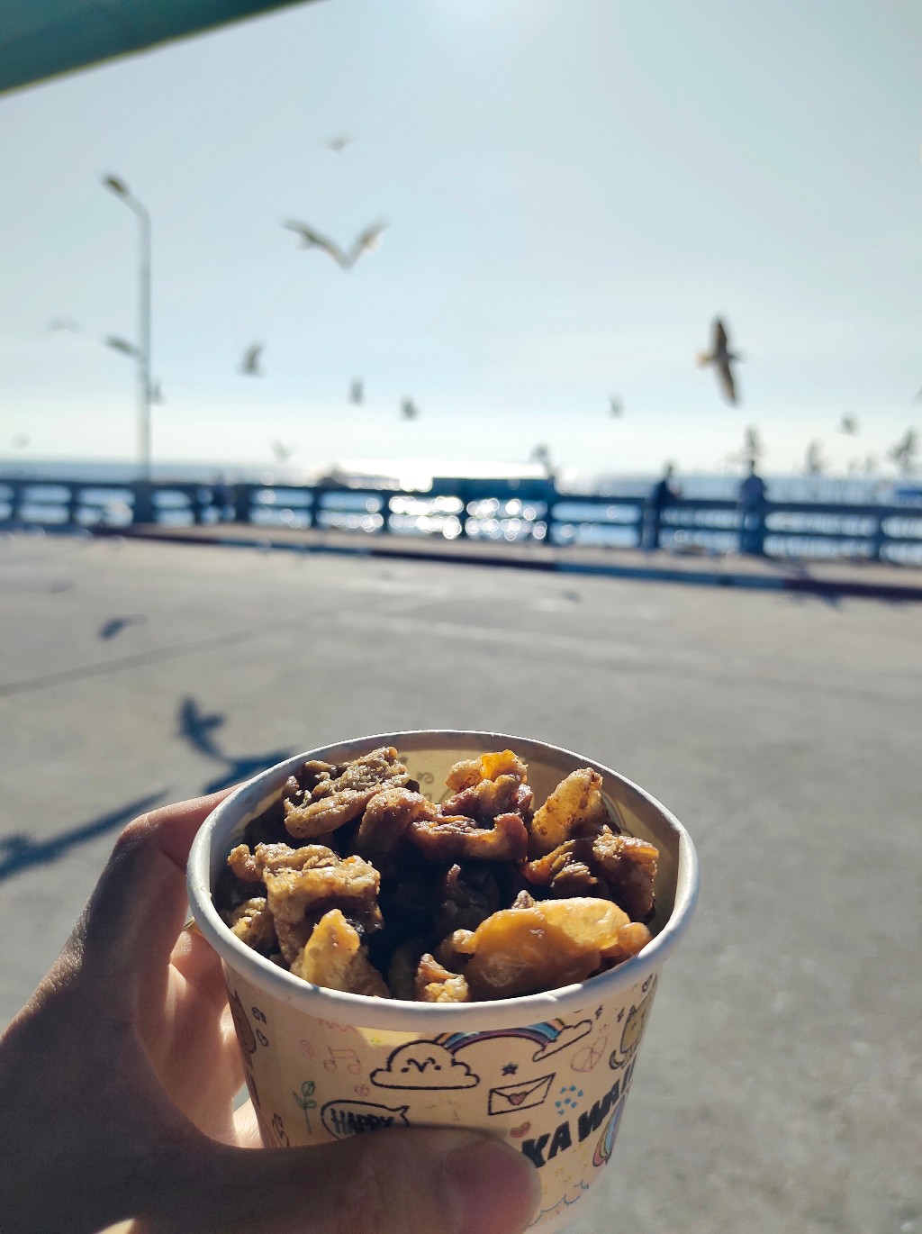 💢 ทางเดินเข้ามาชมนกนางนวล เรียกว่า "สะพานสุขตา" เมื่อเราเดินเข้ามา ซ้ายมือจะมีร้านขายอาหารน้องนกนางนวล (กากหมู) มี 2 ราคา คือ ถ้วยละ 20 บาท และถ้วยใหญ่ 50 บาท เราสามารถให้อาหารได้ทั้ง 2 ฝั่งทางเดิน ยกเว้นตรงกลางสะพานนะคะ