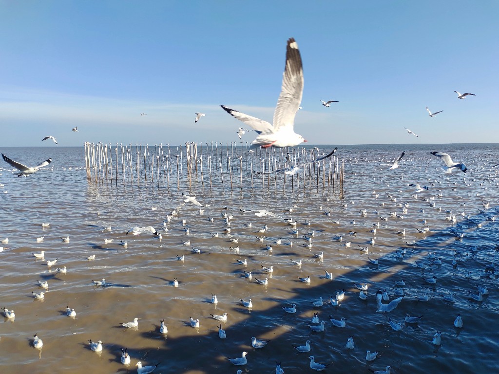 [CR] 🎀 นกนางนวล มาแล้ว!! 🕊️ บินมาไกลถึงไซบีเรีย 🌏 หลบหนาวมาเยือนเมืองร้อน 💥 ณ สถานตากอากาศบางปู สมุทรปราการ 🍃🌳🧡💋⭐👍