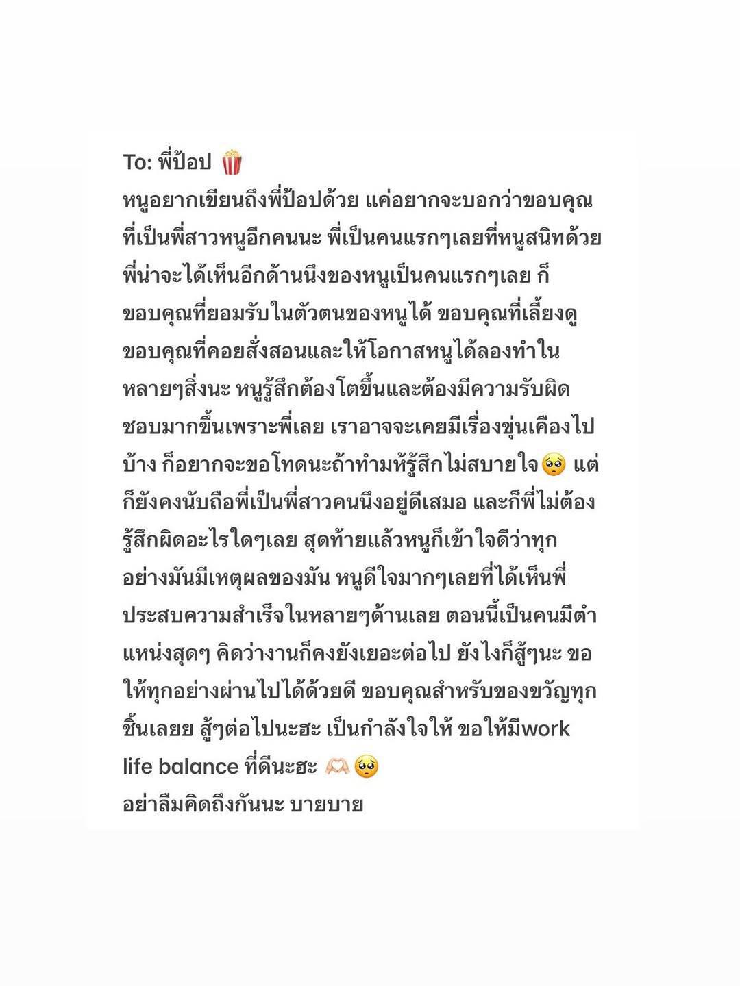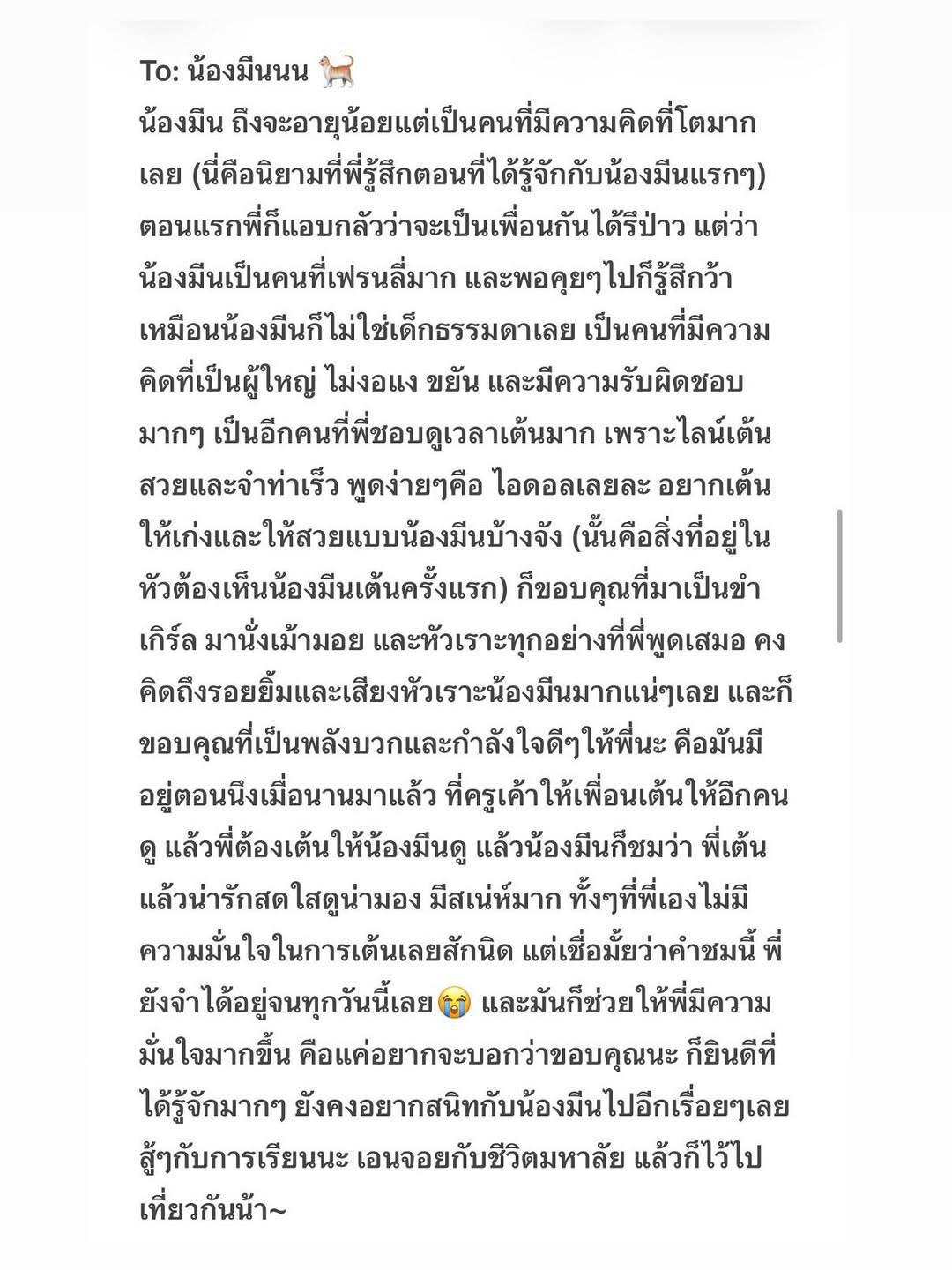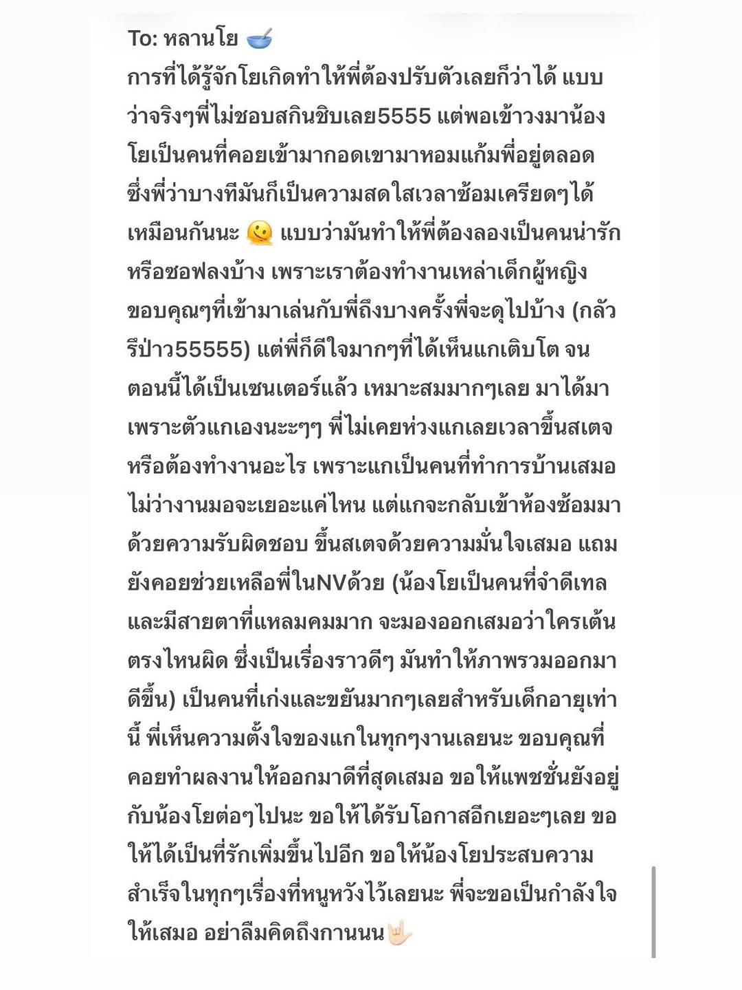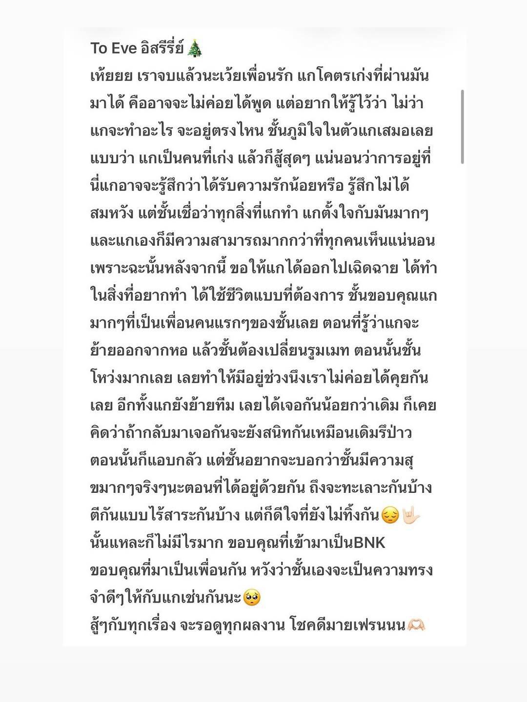 KaofrangBNK48 “...ขอบคุณที่เห็นถึงความพยายามกันมาตลอดเลยนะคะ นี่เองก็เป็นครั้งแรกสำหรับหนูเหมือนกันในการเป็นไอดอล แถมต้องเรียนไปทำงานไป เอาจริงๆ มันหนักมากเลย ทั้งร่างกายและจิตใจ หนูต้องเสียสละ