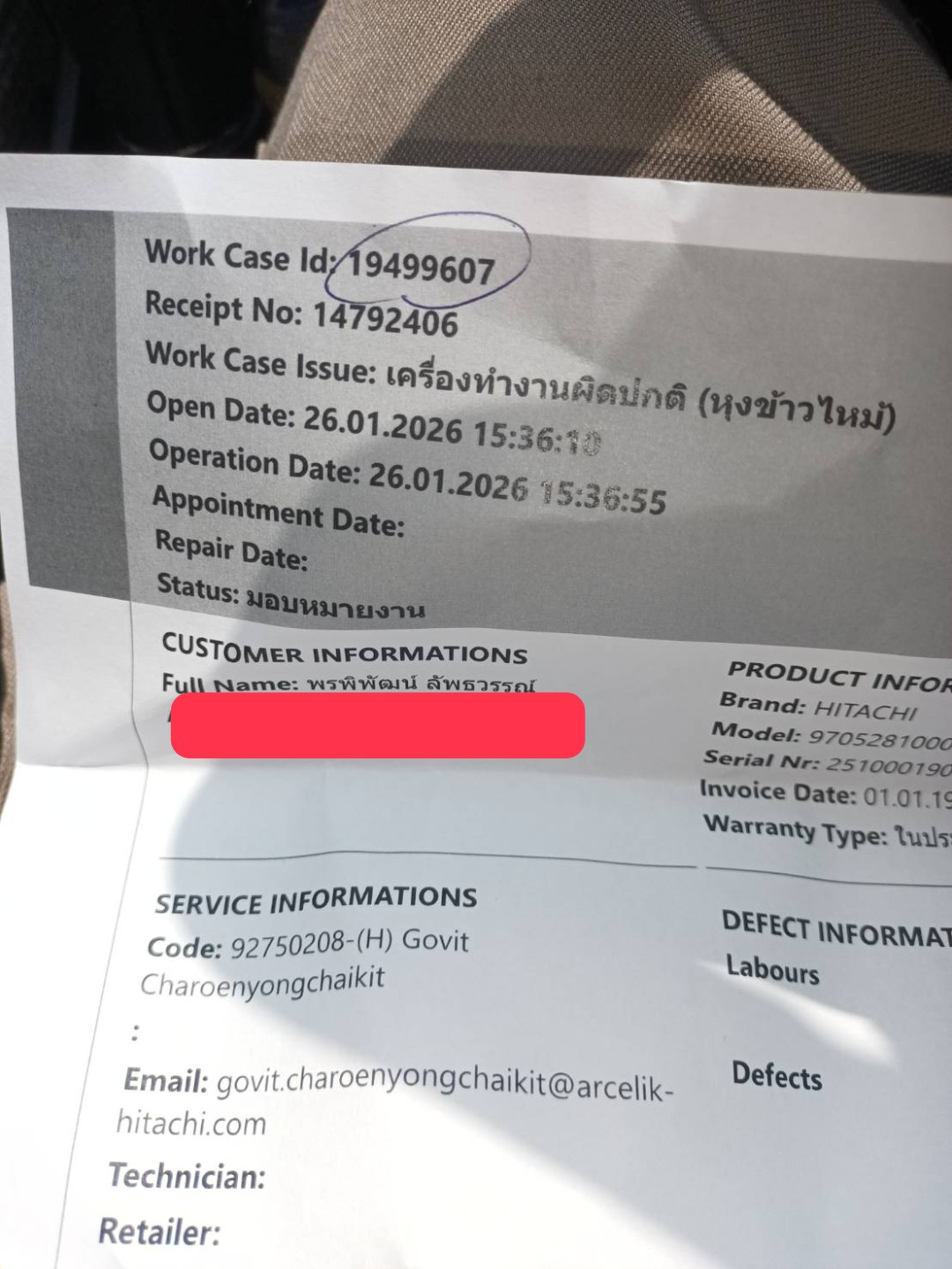 หม้อหุงข้าว hitachi เสียรอซ่อม 2 เดือน