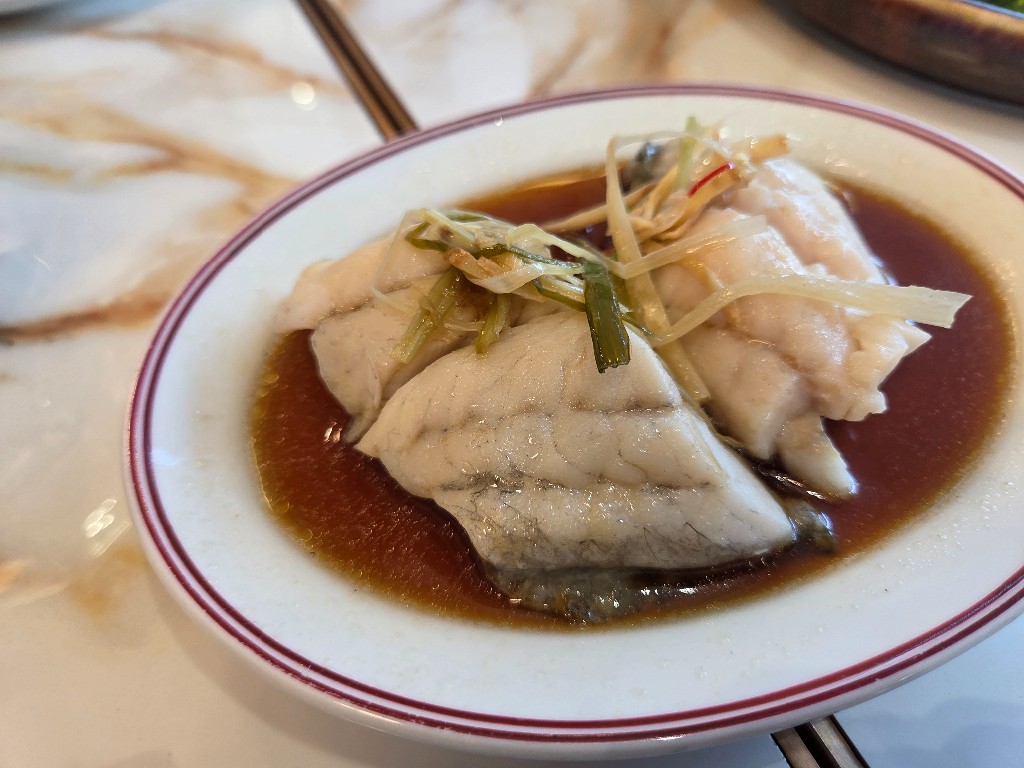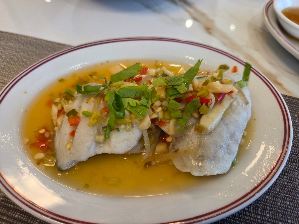 ...เริ่มจาก ปลานึ่งซีอิ๊ว เป็นปลากะพง เนื้อสดเด้งอร่อยดี