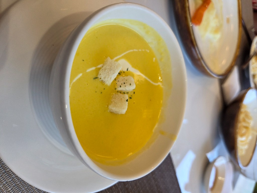 ...เห็นโปรโมตห้องอาหารใน FB มานานแล้ว เพิ่งมีโอกาสได้มาลอง หัวละ 399บ. เป็นบุฟเฟ่ต์แบบสั่งจากเมนู มีรายการอาหาร 50กว่ารายการ และมีที่อยู่นอกเมนู เป็นติ่มซำ 3-4รายการ กับซีซ่าร์สลัด ก็สามารถสั่งได้เรื่อยๆ มีปิดท้ายด้วยเค้กกับผลไม้ แล้วก็มีน้ำให้ขวดนึง ทั้งหมดนี้ทานได้ 2ชม. ซึ่งพอทานจริงๆ แค่ชั่วโมงกว่าก็อิ่มตื้อแล้ววว...