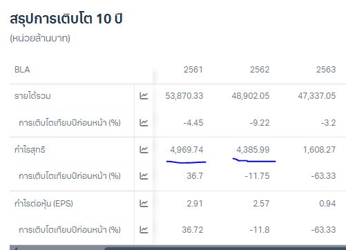 อันนี้เป็นงบการเงินก่อนเกิดวิกฤติโควิด จะเห็นว่า 2 ปี ก่อนไม่รักษากำไร ทำให้ ผิดหลักการลงทุนของผมแต่ เป็นจุดซื้อที่ถูกต้องของหุ้น BLA ที่ราคา 12 บาท ซื้อในปี 2020