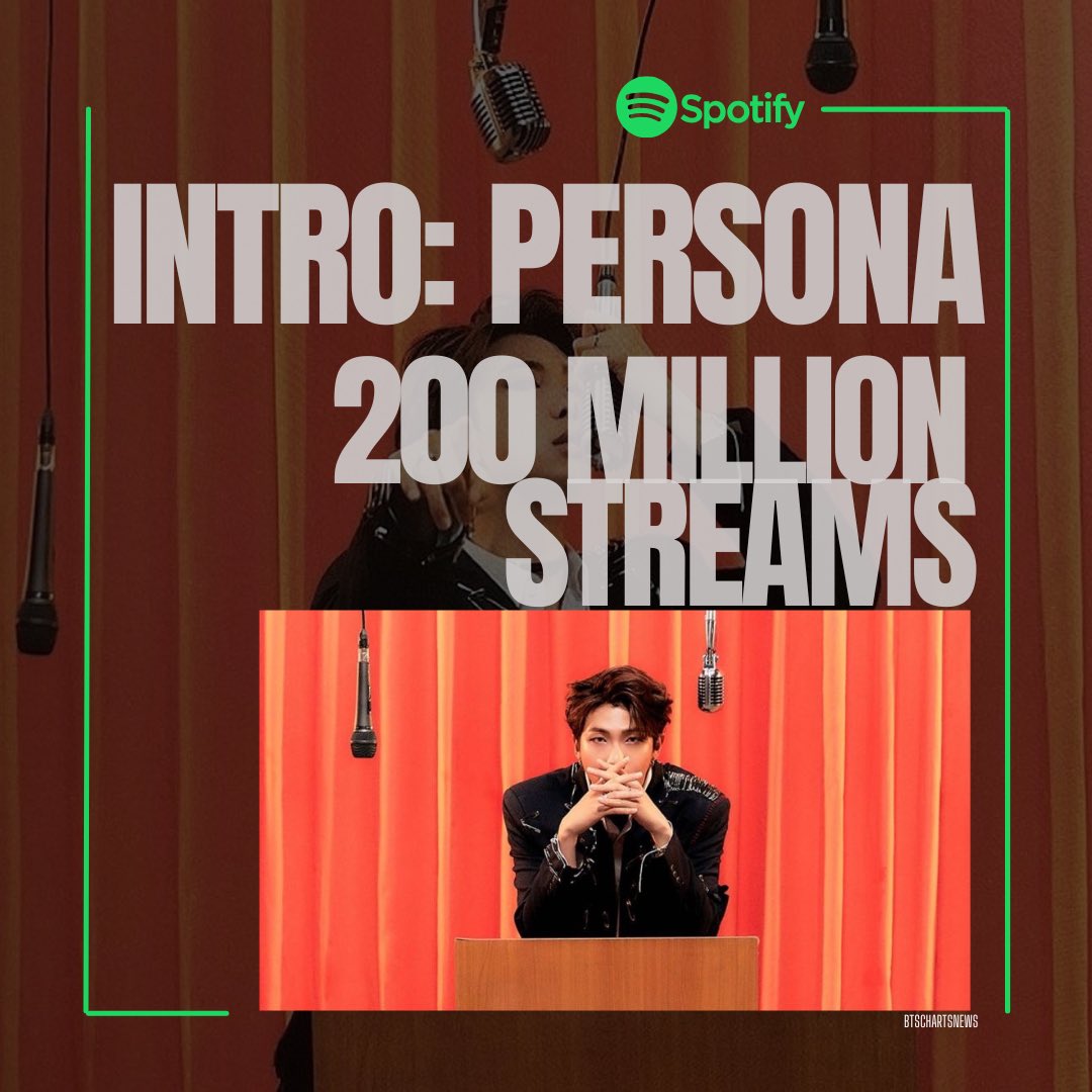 “Intro : Persona” มียอดสตรีมทะลุ 200 ล้าน บน Spotify 🎉 เป็นเพลงที่ 85 ของวง BTS ที่บรรลุเป้าหมายนี้