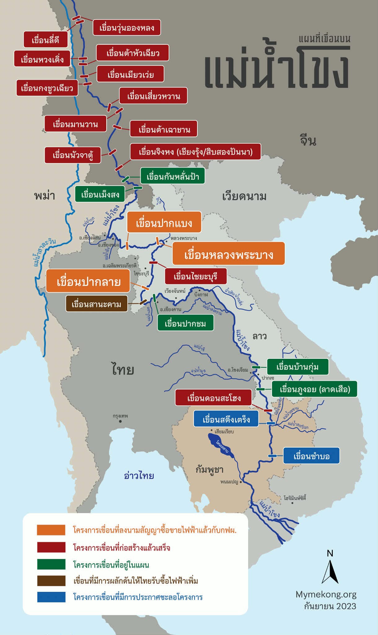ปัจจุบันแม่น้ำโขงเต็มไปด้วยเขื่อนเหมือนกับขั้นบันไดโดยบนแม่น้ำโขงตอนบนในประเทศจีนมี 13 เขื่อน ขณะที่แม่น้ำโขงตอนล่างที่ไหลจากจีนผ่านพม่าเข้าสู่ประเทศลาวโดยตั้งแต่บริเวณชายแดนไทย-ลาว ด้าน จ.เชียงราย ไปจนถึงชายแดนลาว-กัมพูชามีทั้งเขื่อนสร้างแล้วเสร็จ กำลังก่อสร้าง และมีแผนที่จะสร้าง 11 แห่ง