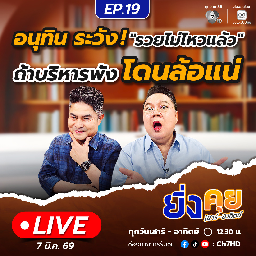 ยิ่งคุยเสาร์อาทิตย์ วันนี้กับประเด็นอนุทิน ระวัง ! "รวยไม่ไหวแล้ว" ถ้าบริหารพัง โดนล้อแน่