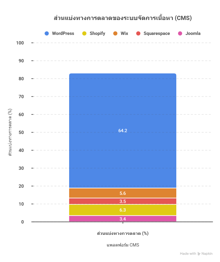 จากข้อมูลชุดนี้เราจะเห็นภาพที่ชัดเจนว่า WordPress ยังคงครองแชมป์ความนิยมสูงสุดอย่างต่อเนื่อง โดยมีความหนาแน่นของผู้ใช้งานมากกว่าระบบ CMS อื่นๆ ถึง 10 เท่าตัว ความสำเร็จนี้ไม่ได้เกิดขึ้นจากโชคช่วย แต่มาจากความยืดหยุ่นและการพัฒนาที่ไม่เคยหยุดนิ่ง ซึ่งตอบโจทย์ทั้งกลุ่มผู้เริ่มต้นใช้งานไปจนถึงองค์กรขนาดใหญ่ระดับโลก