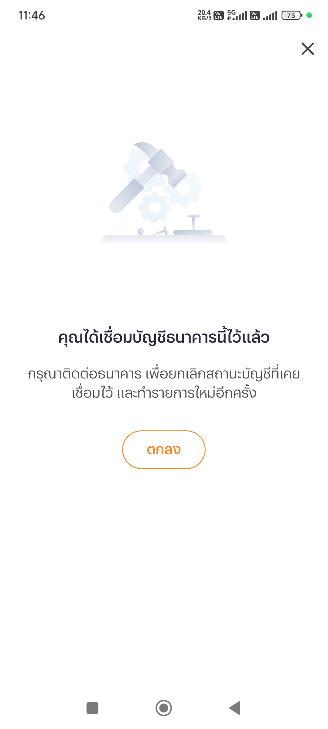 คือเราเคยเชื่อมธนาคารกรุงไทยกับ trueMoney ไว้ ทีนี้ ช่วงนึงเราปิดบัญชีทรูมันนี่ โดยไม่ได้กดยกเลิกการเชื่อมต่อกับธนาคารกรุงไทย ทีนี้ผ่านไป เดือนนึง เราก็กลับมาใช้ทรูมันนี่ต่อ สมัครใหม่เบอร์เดิมที่เคยปิดไว้, ทีนี้ก็จะเชื่อมกรุงไทยเพื่อไว้จ่ายงี้ แต่มันเชื่อมไม่ได้ ตอนมันเด้งไป Google มันขึ้น error พอกลับไปแอพกรุงไทย มันขึ้นตามรูป , แต่ว่า มันไม่ได้เชื่อต่อ