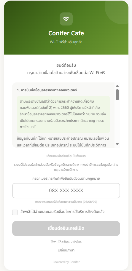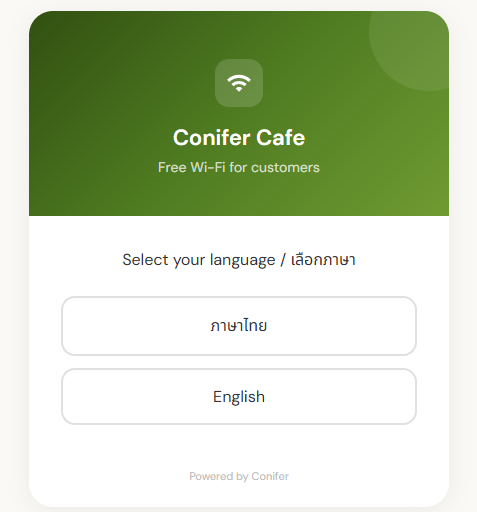 สวัสดีครับ ผมทำงานด้าน IT และระบบเครือข่าย เลยอยากเล่าสิ่งที่ทำอยู่ครับ ผมทำ Smart WiFi Gateway สำหรับร้านกาแฟ สามารถปรับใช้ได้กับร้านอื่น ๆ เรื่องมีอยู่ว่า ผมเข้าร้านกาแฟบ่อย จะมีบางร้านเหมือนกันหมด คือติดกระดาษ ชื่อ WiFi และ Password บางร้านเขียนมือ บางร้านพิมพ์ บางร้านลบแล้วเขียนใหม่ทุกเดือน ผมเลยคิดว่า ถ้าทำให้ลูกค้าต่อ WiFi ร้านแล้วเจอหน้าร้านสวย ๆ เลยล่ะ ไม่ต้อง password ไม่ต้องถามพนักงาน แค่กดเชื่อมต่อ ยอมรับเงื่อนไข แล้วใช้ได้เลย ก็เลยทำออกมาเป็นกล่องเล็ก ๆ ชื่อ Conifer เสียบเข้า router ร้านที่มีอยู่เสียบปลั๊ก จบครับ