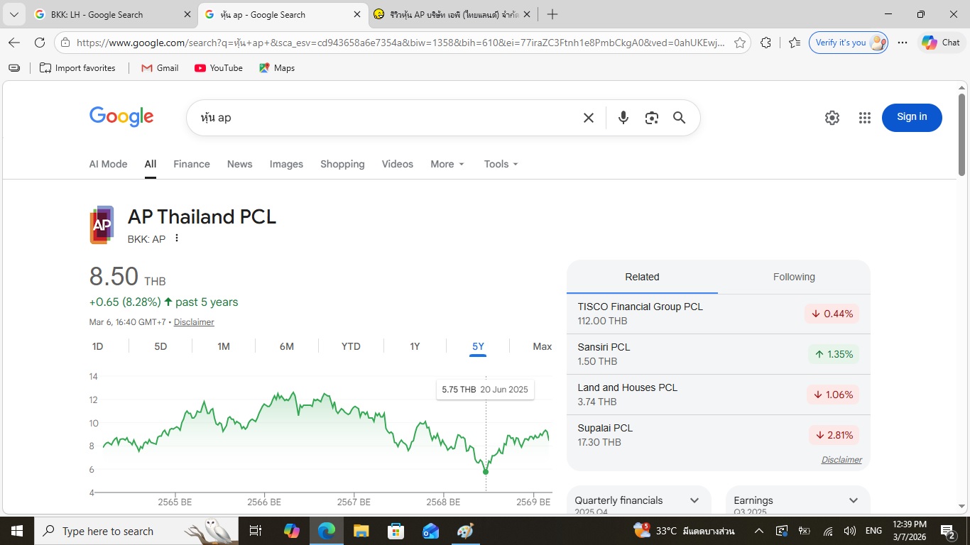 หุ้น AP ช่วงวิกฤต 2025 5.75 บาท 20 มิถุนายน 2025