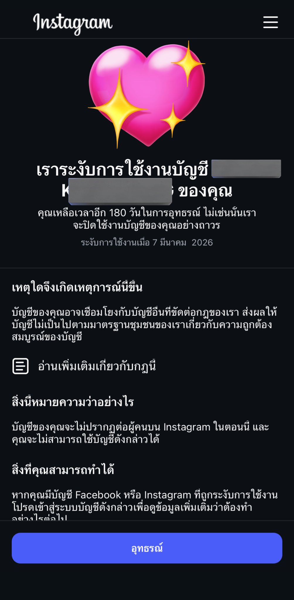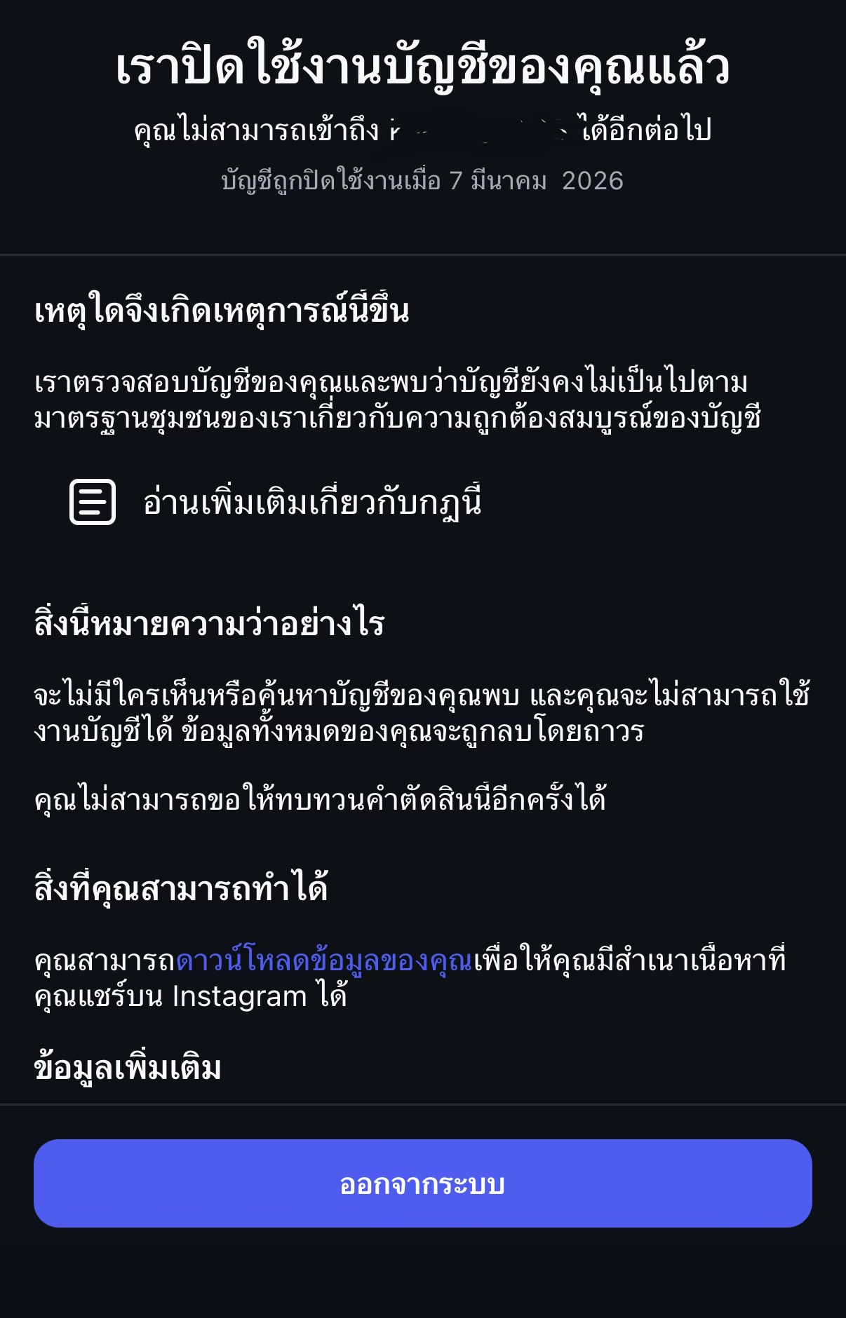 จู่ๆ ig ก็ถูกระงับ ทั้งๆที่เล่นตามปกติไม่ได้ละเมิดอะไร / ใครมีวิธีกู้ ig ที่ถูกระงับถาวรคืนไหมคะ