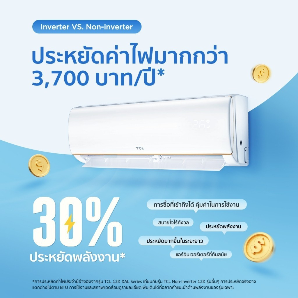 ถ้ากำลังมองหาแอร์สำหรับห้องใหญ่ที่เย็นเร็ว ใช้งานสบาย และช่วยประหยัดไฟในระยะยาว รุ่นนี้ถือว่าใช้งานได้ครบมาก เพราะ TCL แอร์อินเวอร์เตอร์ 24000 BTU รุ่น T-PROS25 มาพร้อม AI Inverter ที่ควบคุมอุณหภูมิแม่นยำ ลดการใช้พลังงานได้สูงสุด 30–60% อีกทั้งยังสั่งงานผ่าน Wi-Fi ด้วยแอป TCL Home ได้จากระยะไกล จึงเหมาะกับบ้านที่เปิดแอร์บ่อยหรืออยากเปิดห้องให้เย็นก่อนถึงบ้าน 🌀