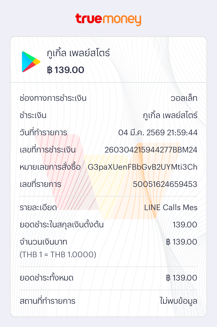 ยอดเงินในทรูมันนี่วอลเล็ทโดนหักจากบริการของ google play เกี่ยวกับ ชำระ ค่า line call me