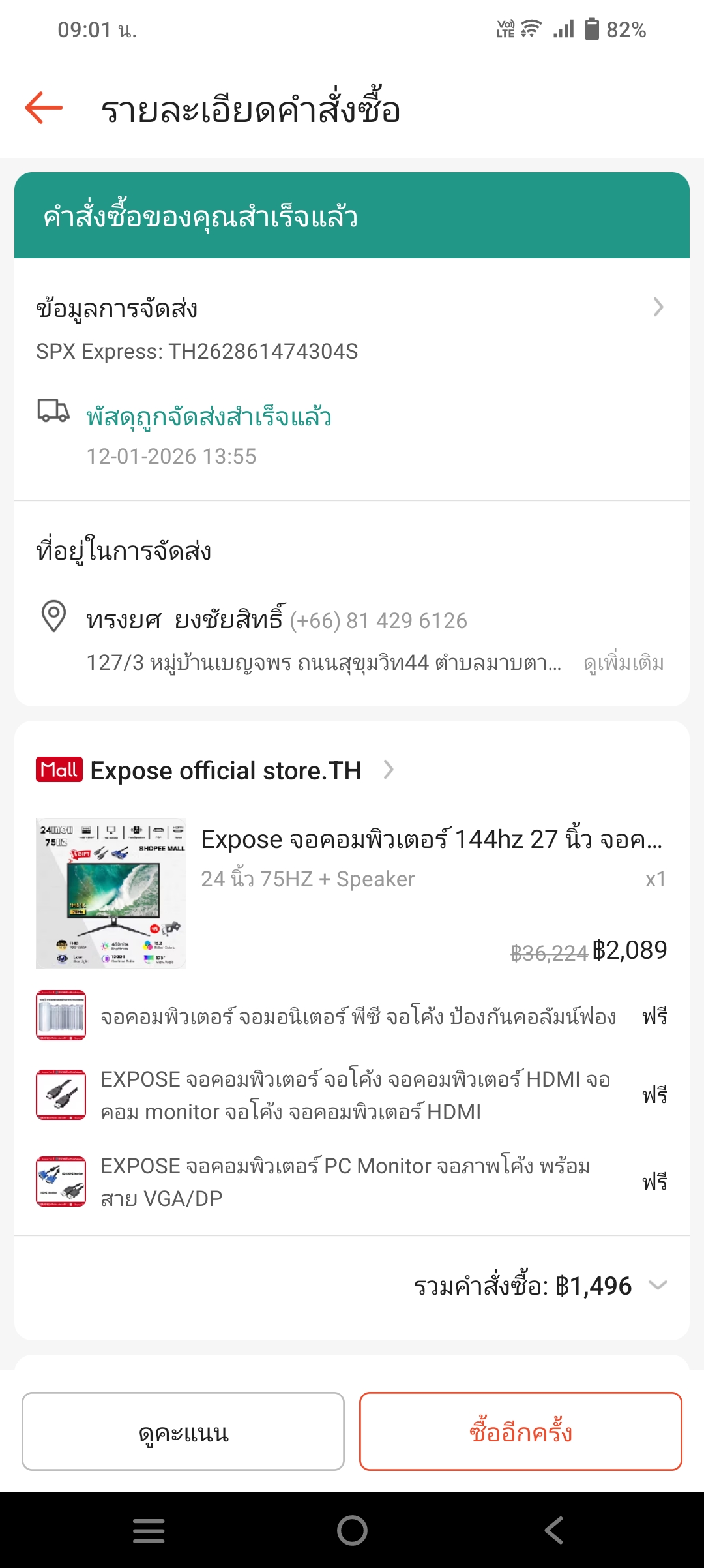 รายงานทาง shopee บอกว่าให้ติดต่อกับทางร้าน
