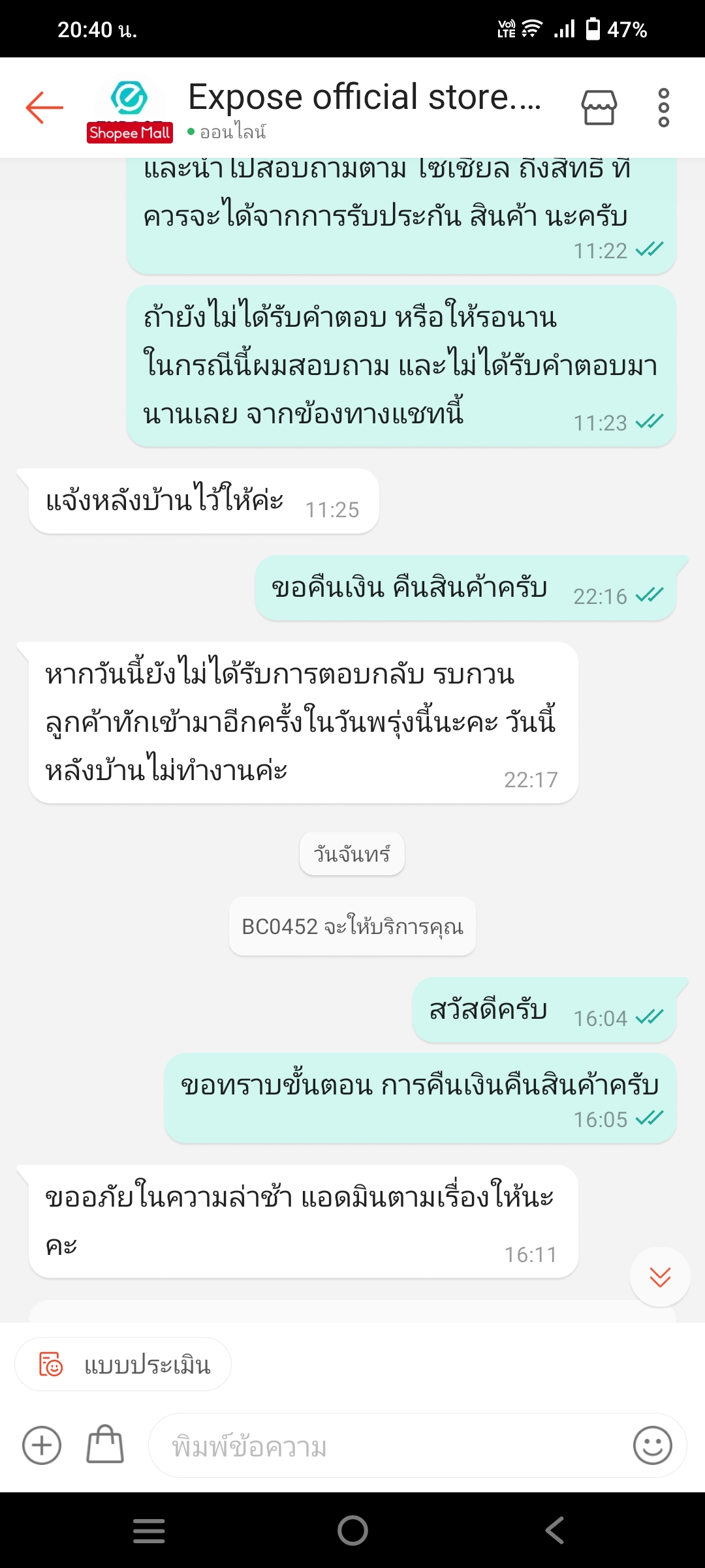 โดนร้านค้าใน Shopee ไม่รับผิดชอบสินค้า ทั้งที่อยู้ในรับประกัน